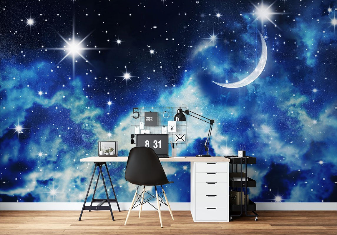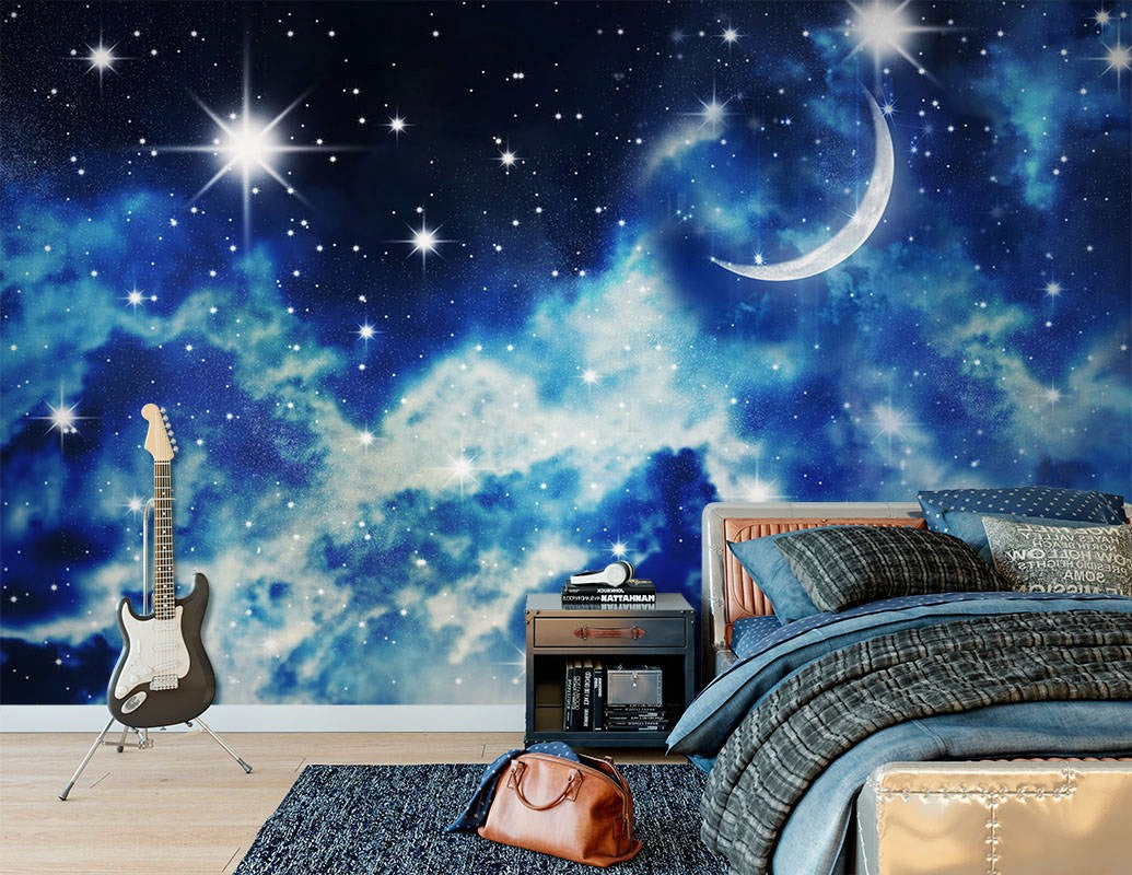 Clouds Fantasy Blue Wallpaper Mural,Self-Adhesive Peel And Stick 3D Wall Decal,Designer Australian Company Wall Decor