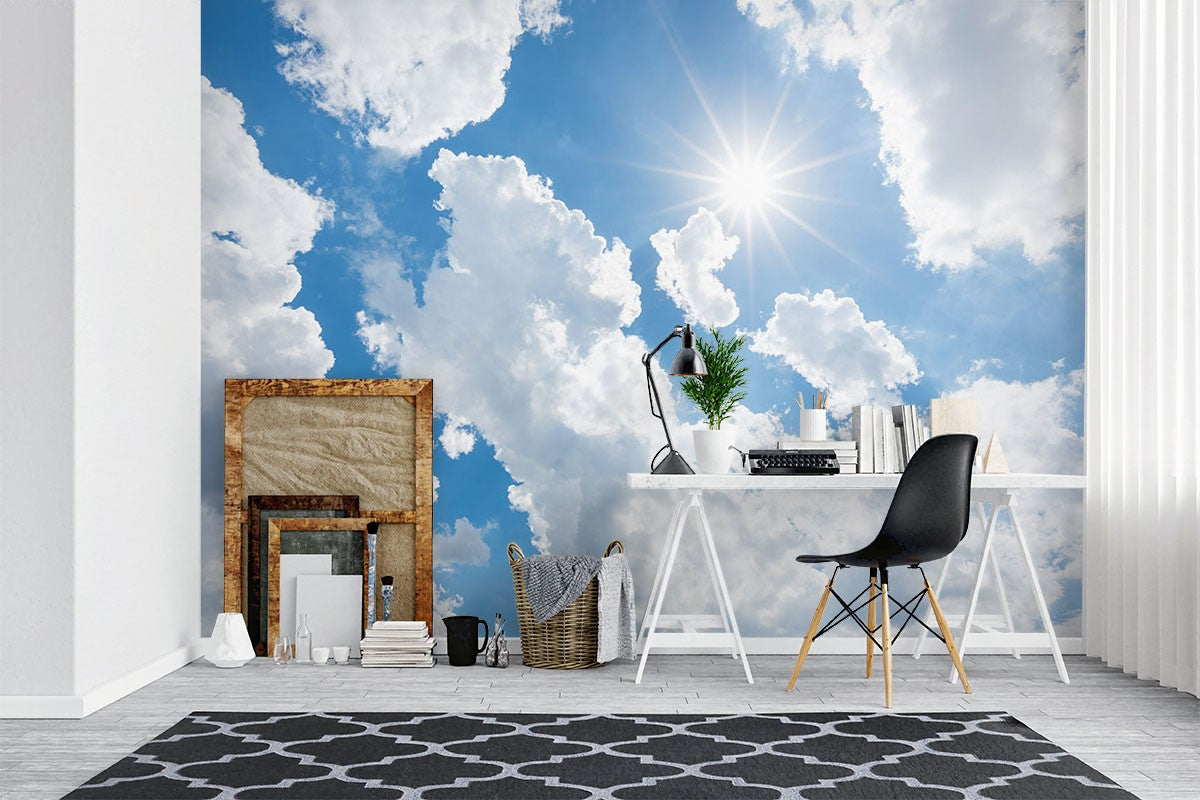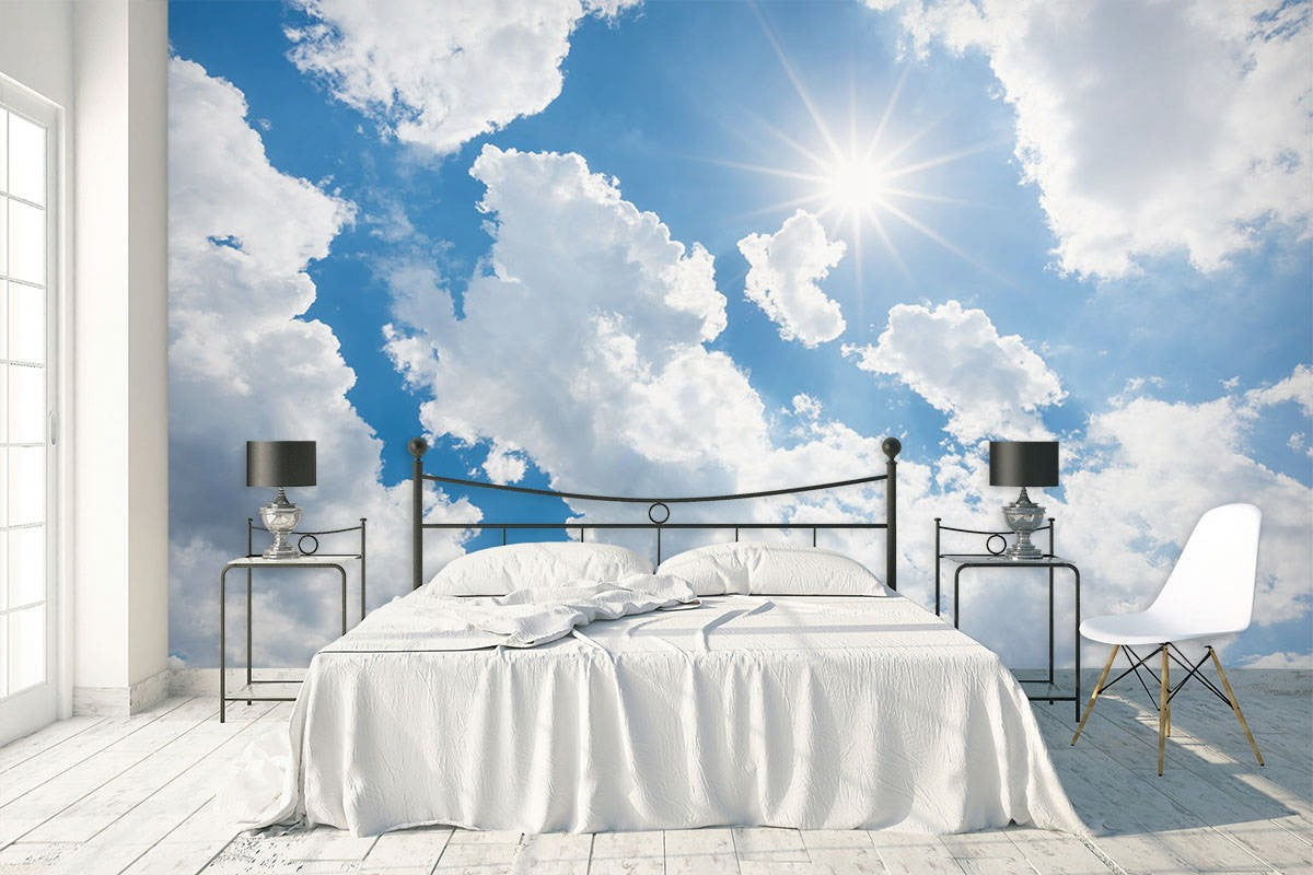 Clouds Blue Nature Sky Blue Wallpaper Mural,Self-Adhesive Peel And Stick 3D Wall Decal,Removable Designer Wall Decor