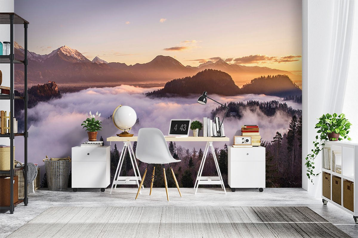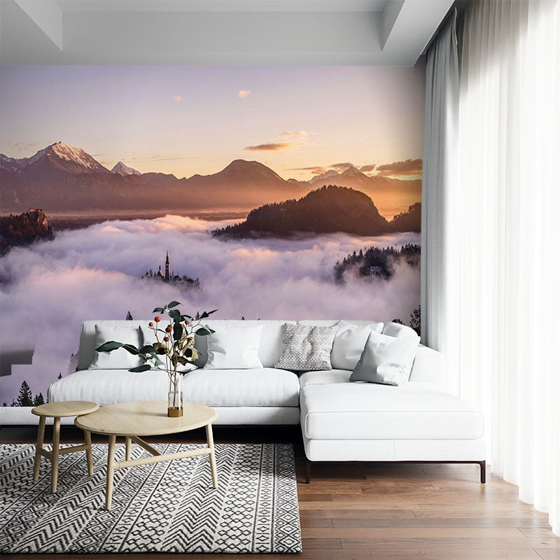 Clouds Forest Nature Mountain Gold Wallpaper Mural,Self-Adhesive Peel And Stick 3D Wall Paper,Australian Company Removable Wall Decor