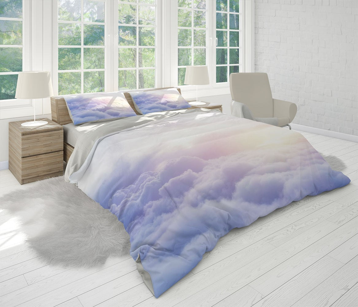Clouds Sun Nature Sky Blue 3D Duvet Cover Set W Pillow Cover, Single Double Queen King Size, Printed Cotton Quilt Doona Cover 3 Pcs