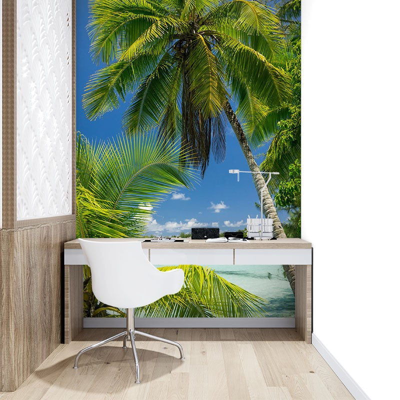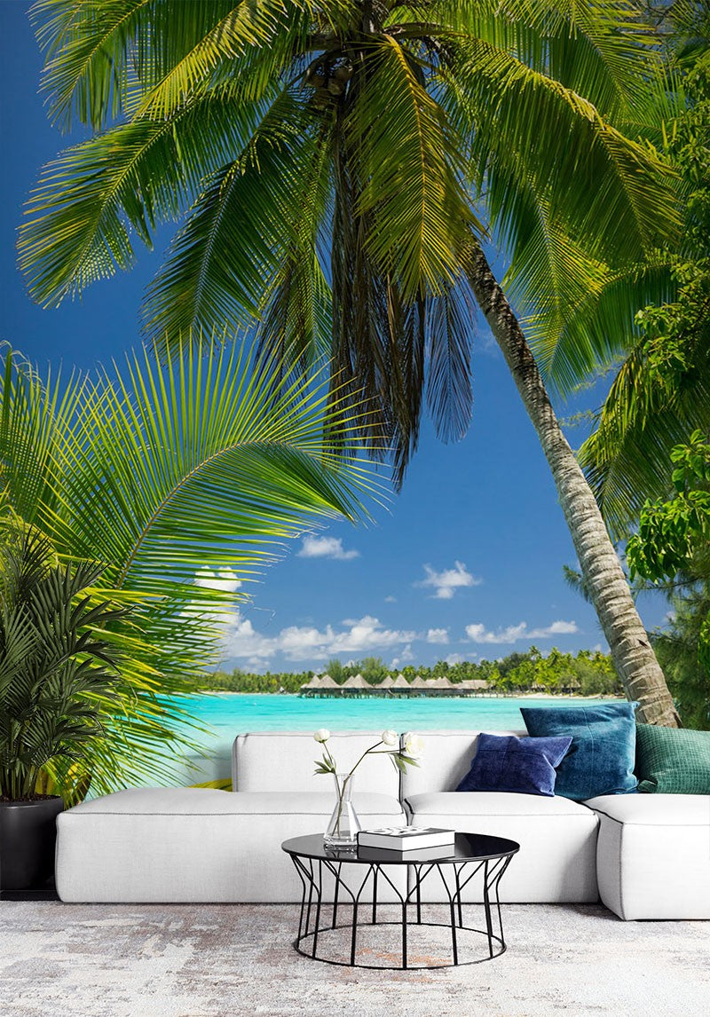 Coconut Beach Palm Tree Green Wallpaper Mural,Self-Adhesive Peel And Stick 3D Wall Decal,Australian Company Bedroom Wall Decor
