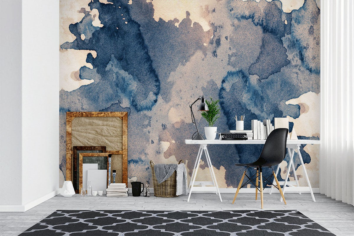 Color Patches Art Abstract Blue Wallpaper Mural,Self-Adhesive Peel And Stick 3D Wall Art,Bedroom Designer Wall Decor