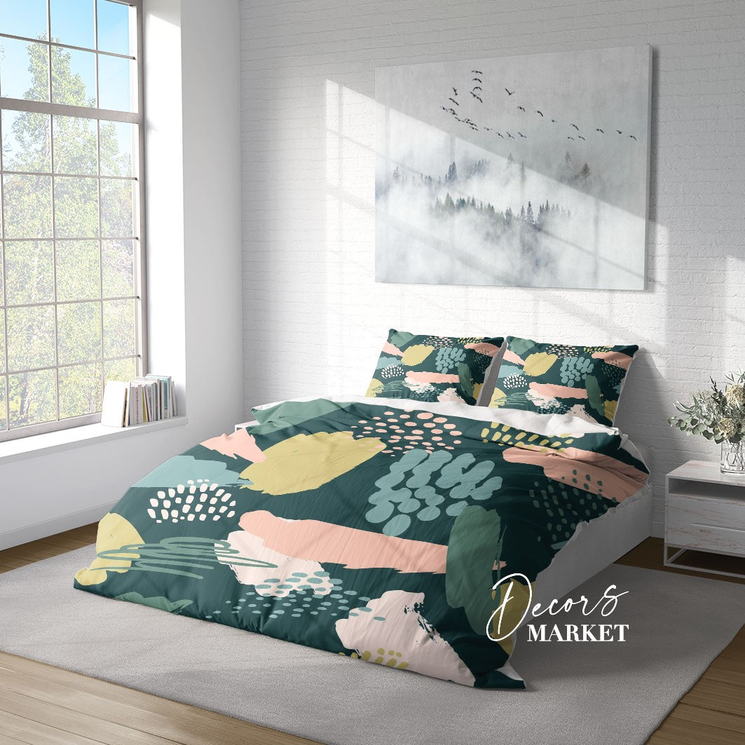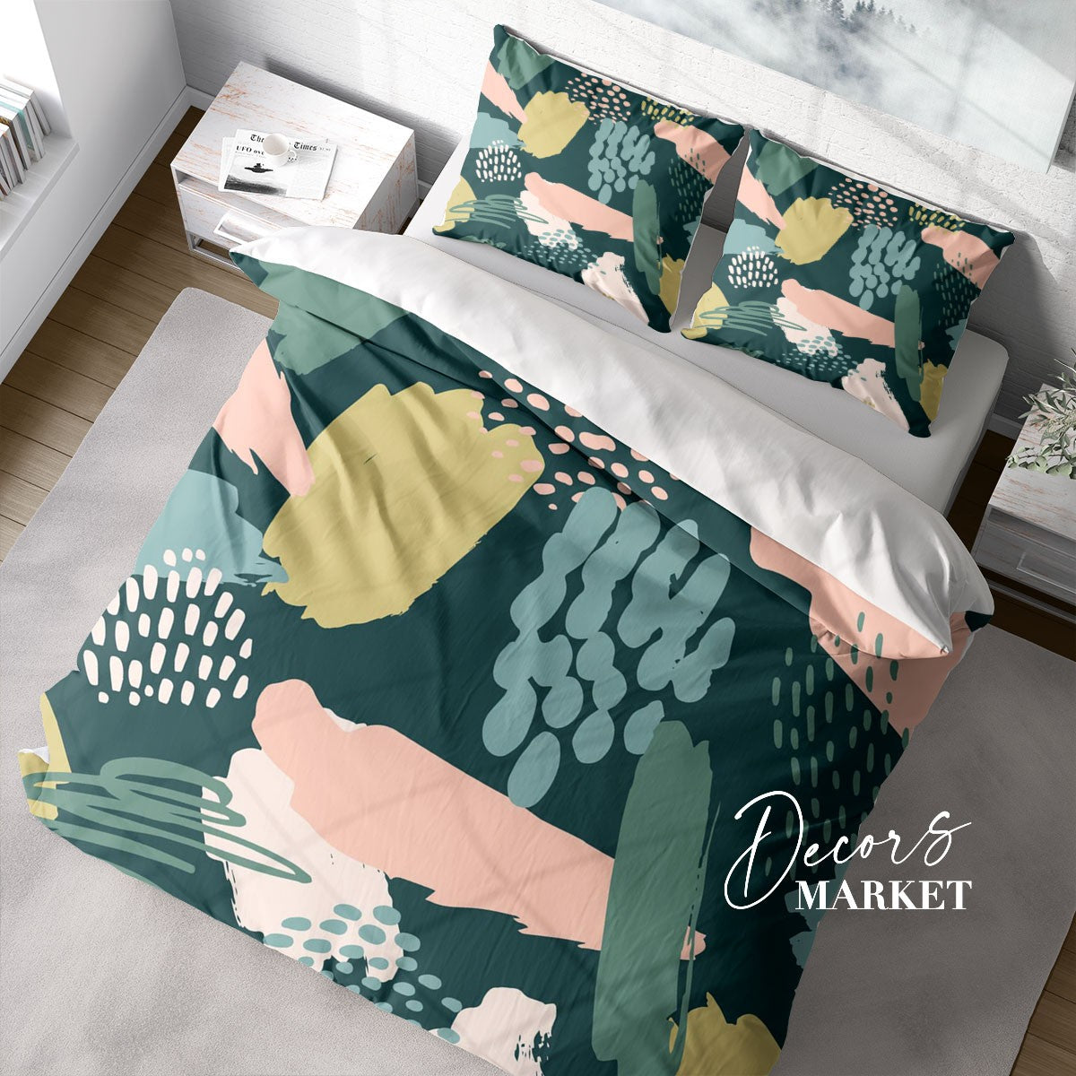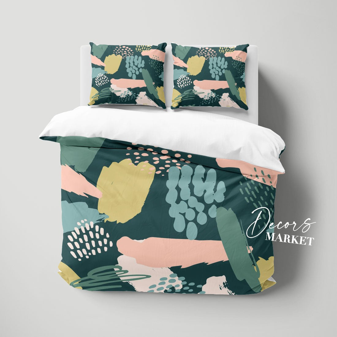 Color Spots Duvet Cover Set w Pillowcases, Green Floral Patterns 3D Quilt Cover, 3pc Single Double Queen King Size Doona Cover