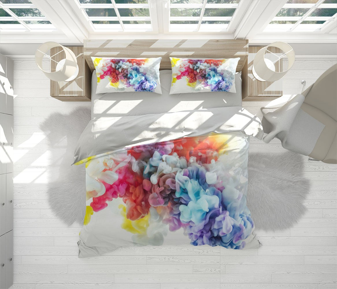 Colored Smoke Art Abstract Multicolour 3D Duvet Cover Set W Pillow Cover, Single Double Queen King Size, Printed Cotton Quilt Doona Cover