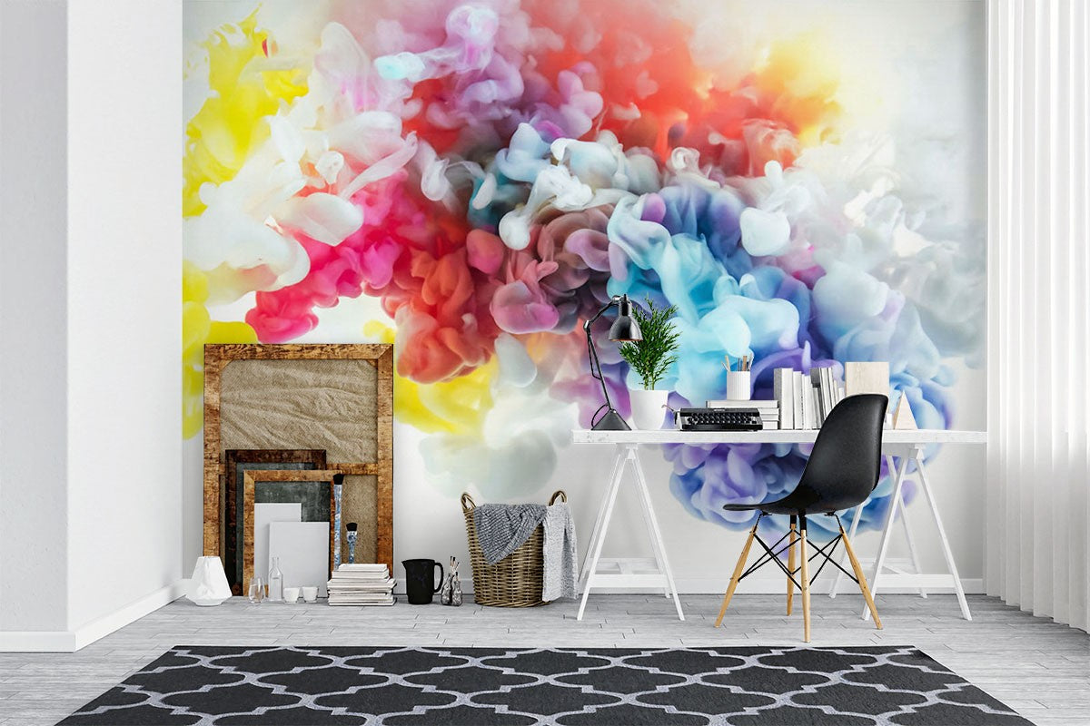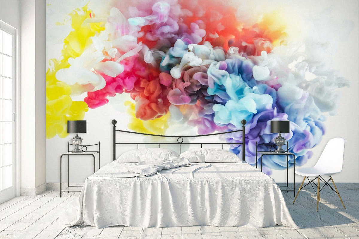 Colored Smoke Art Abstract Multicolour Wallpaper Mural,Self-Adhesive Peel And Stick 3D Wall Decor,Removable Australian Company Wall Decor