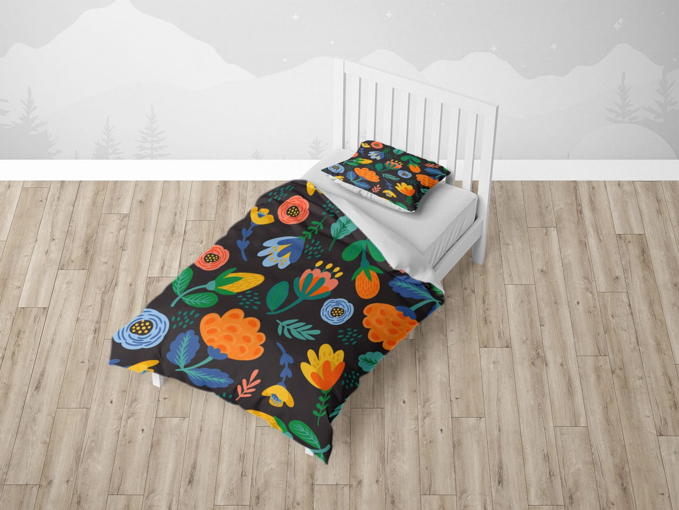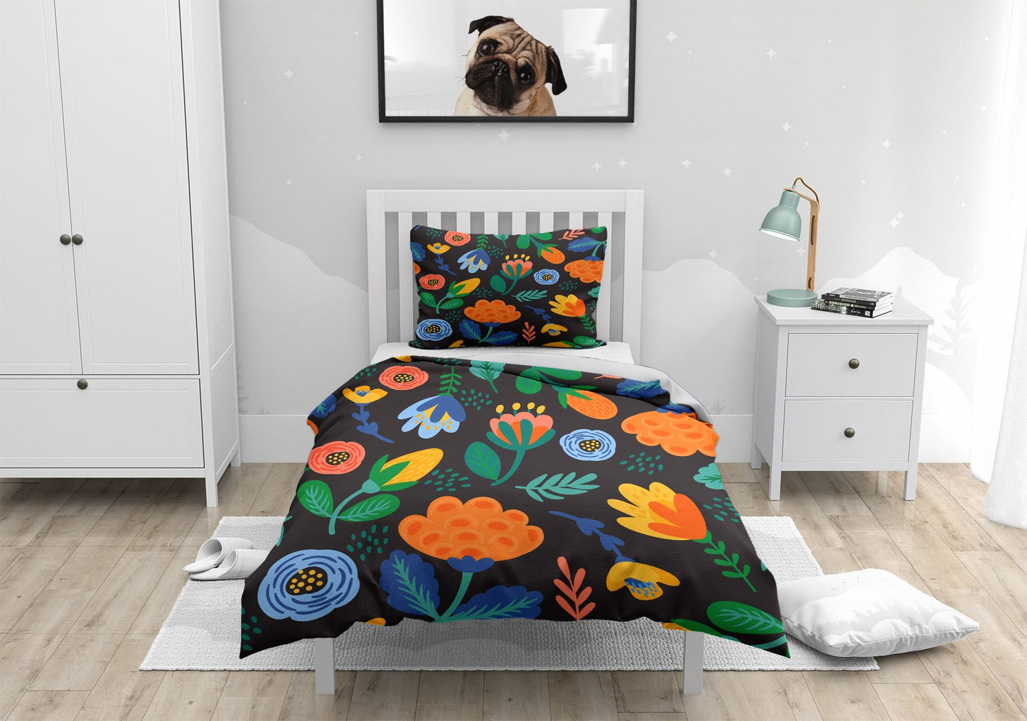 Colorful Flower Duvet Cover Set w Pillowcases, Colorful Kids Patterns 3D Quilt Cover, 3pc Single Double Queen King Size Doona Cover