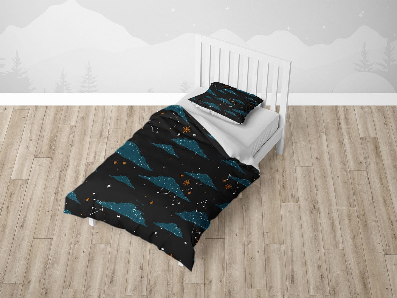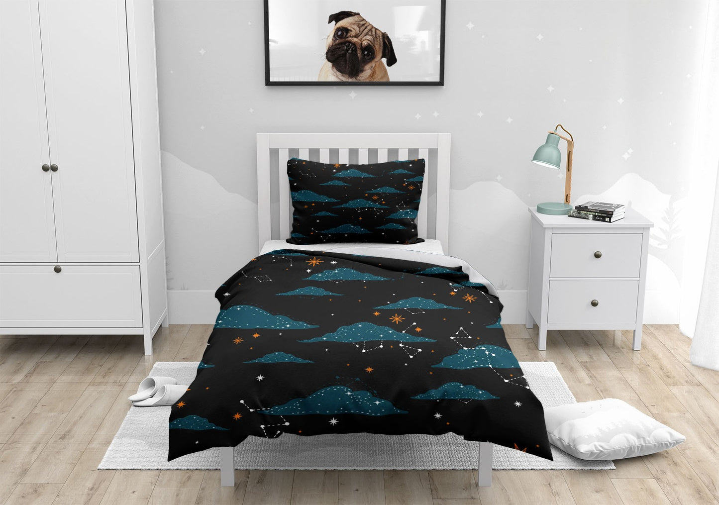 Constellation Cloud Duvet Cover Set w Pillowcases, Black Kids Patterns 3D Quilt Cover, 3pc Single Double Queen King Size Doona Cover