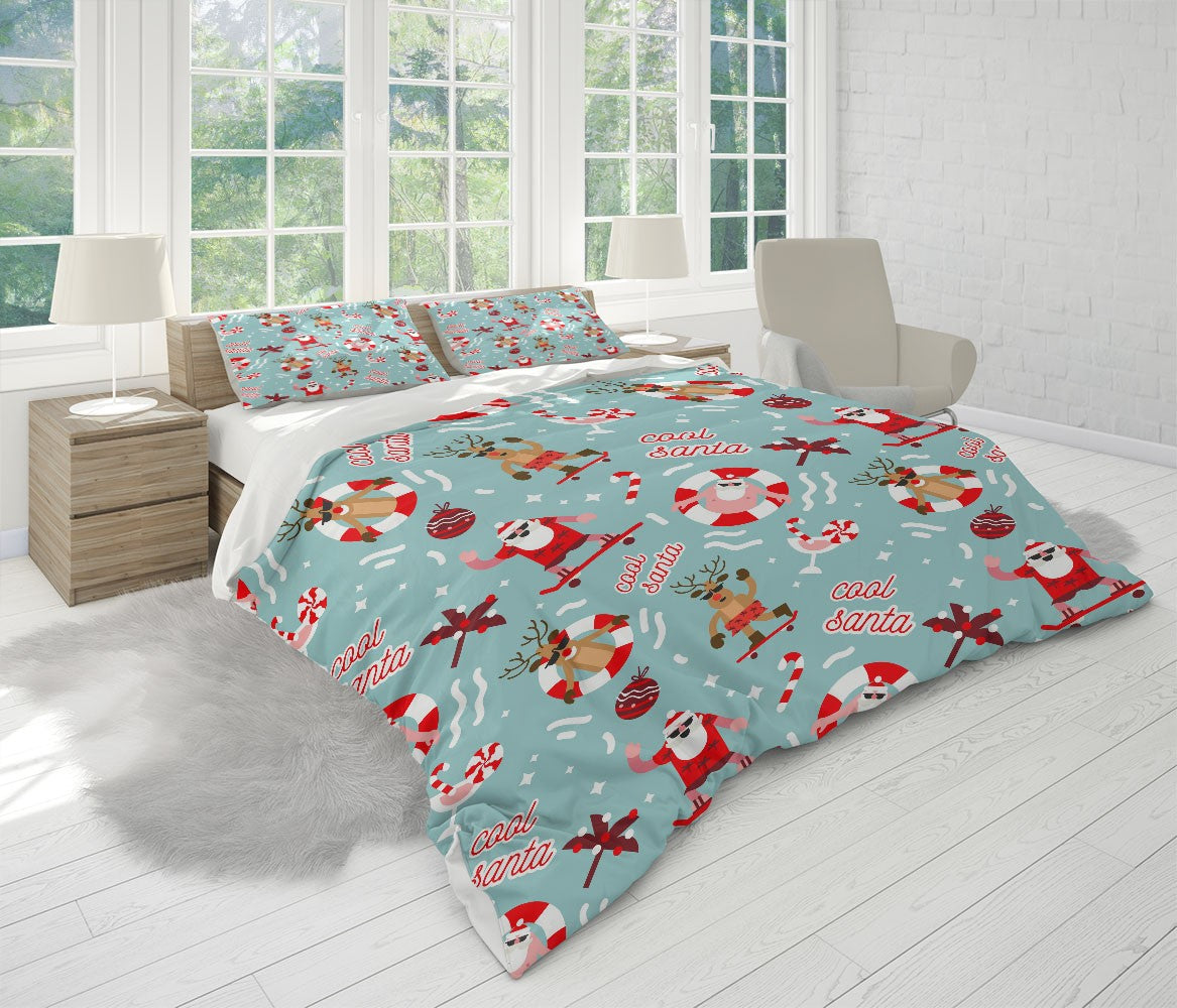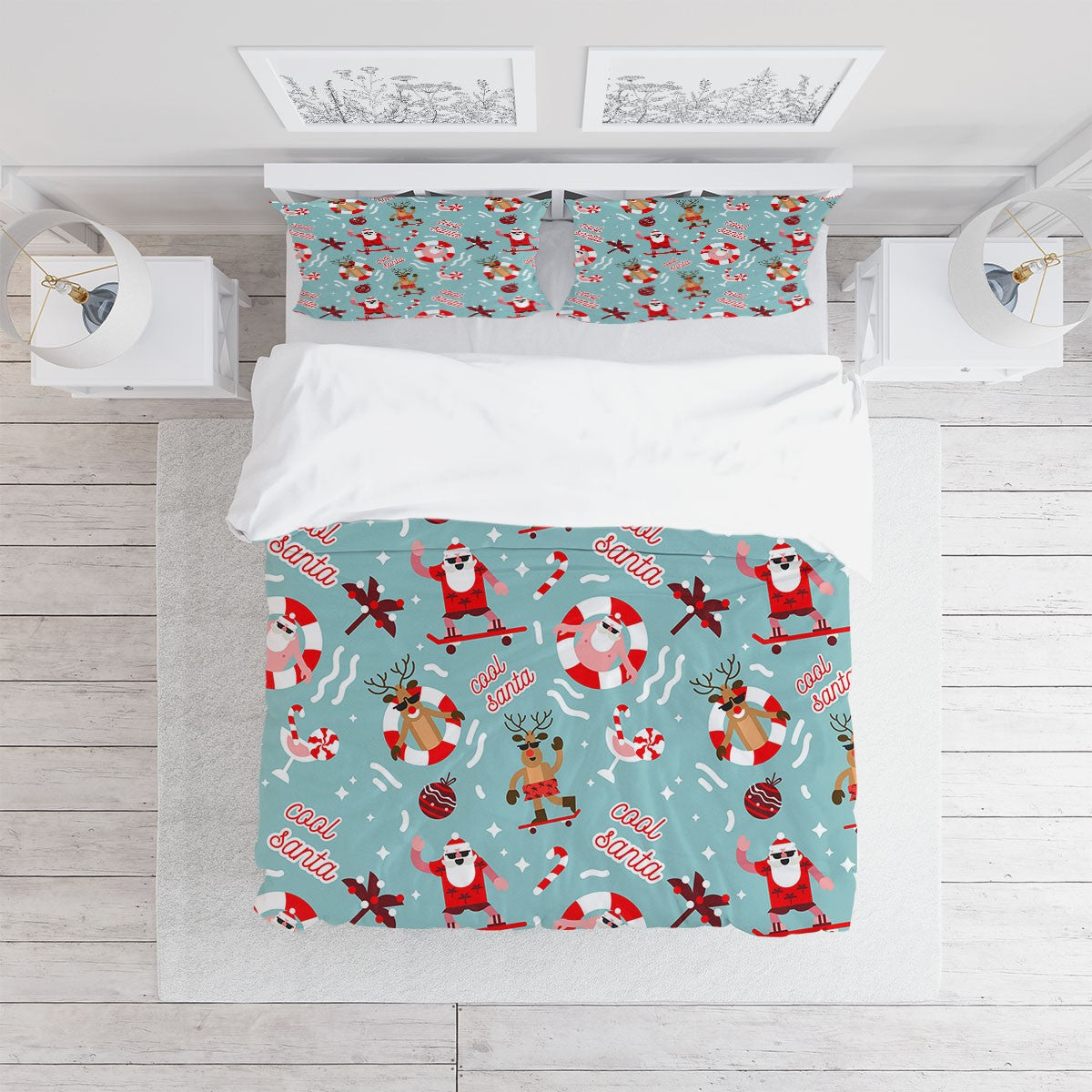 Cool Santa Reindeer Duvet Cover Set W Pillowcases, Blue Texture Patterns 3D Quilt Cover, 3Pc Single Double Queen King Size Doona Cover