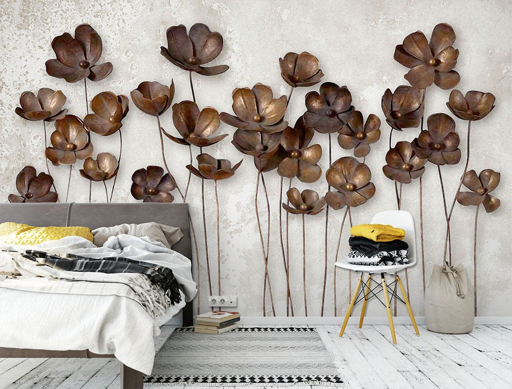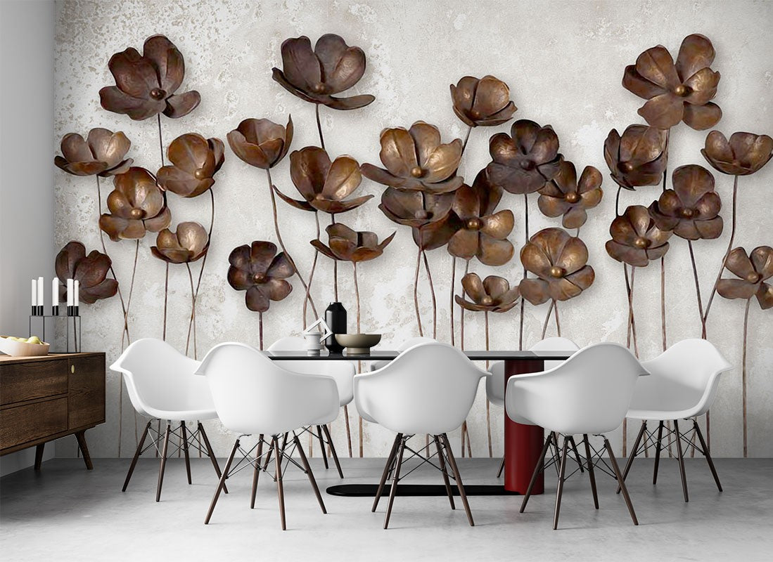 Copper Crafts Floral Dutch Flowers Brown Wallpaper Mural,Self-Adhesive Peel And Stick 3D Wall Art,Australian Company Removable Wall Decor