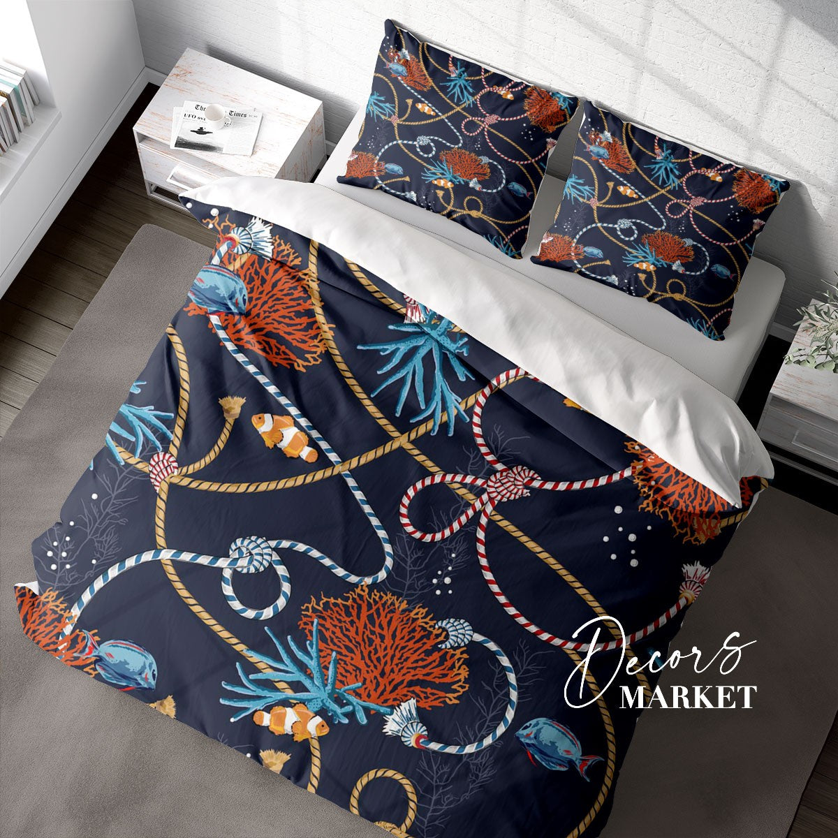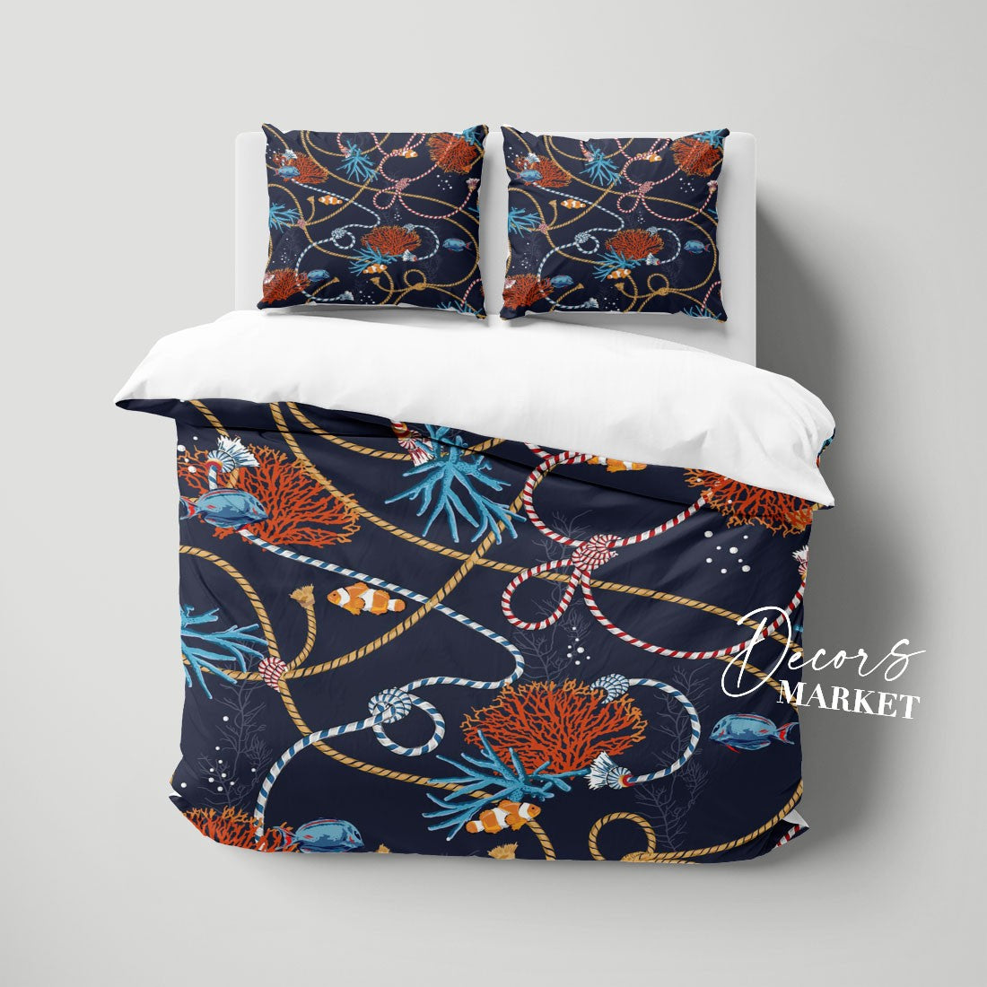Coral Line Duvet Cover Set w Pillowcases, Colorful Art Fantasy 3D Quilt Cover, 3pc Single Double Queen King Size Doona Cover