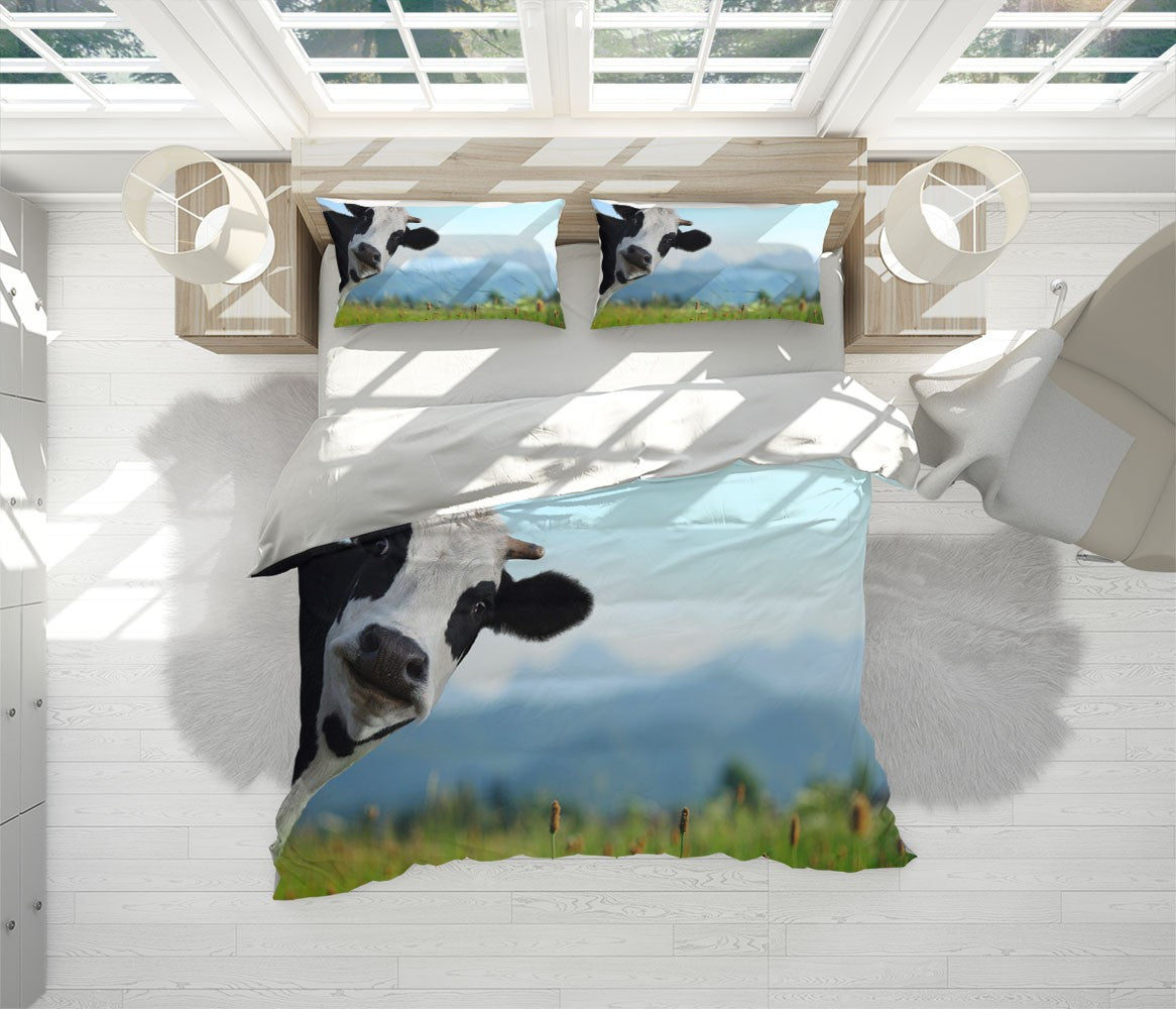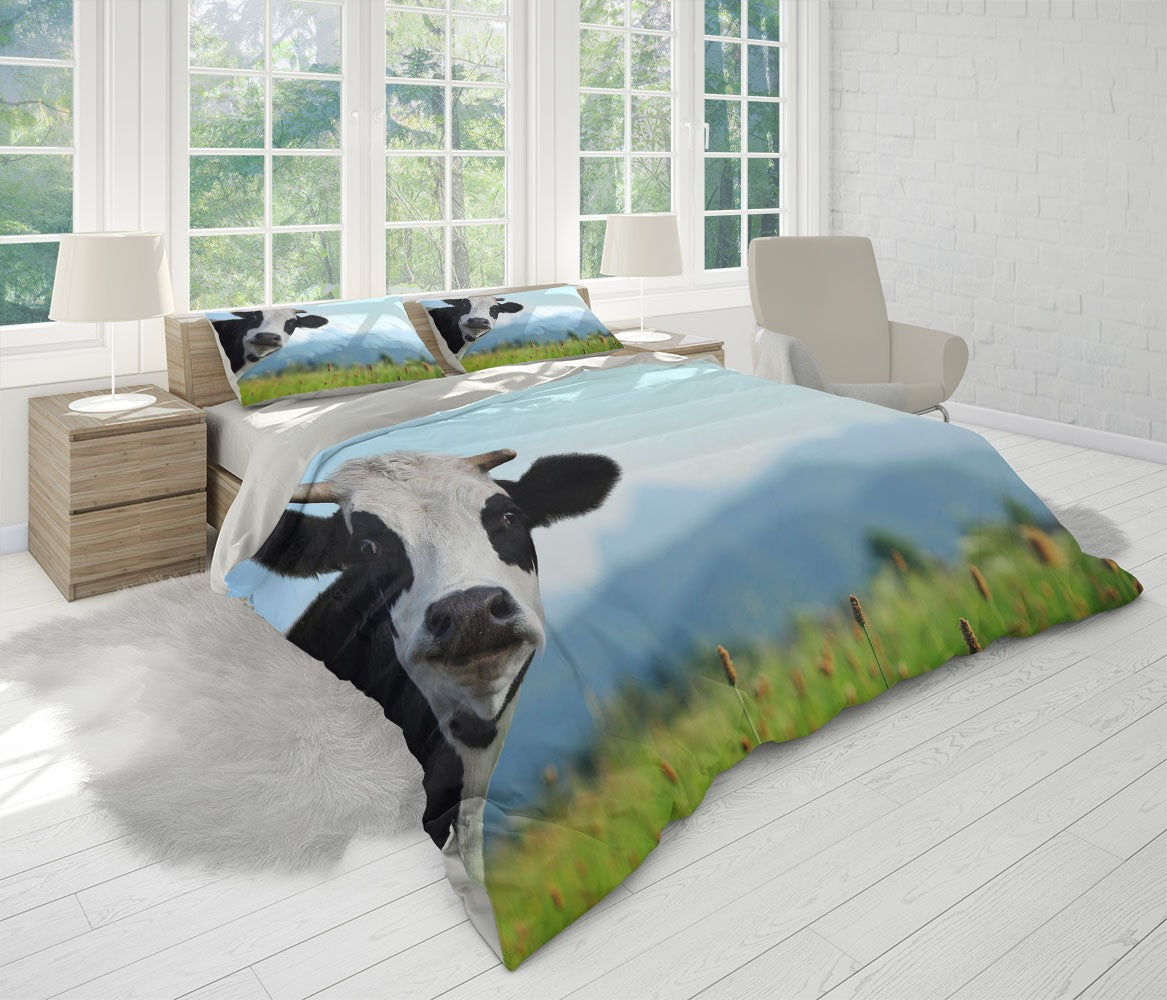 Cows Steppe Animals Farm Animals Blue 3D Duvet Cover Set W Pillow Cover, Single Double Queen King Size, Printed Cotton Quilt Doona Cover