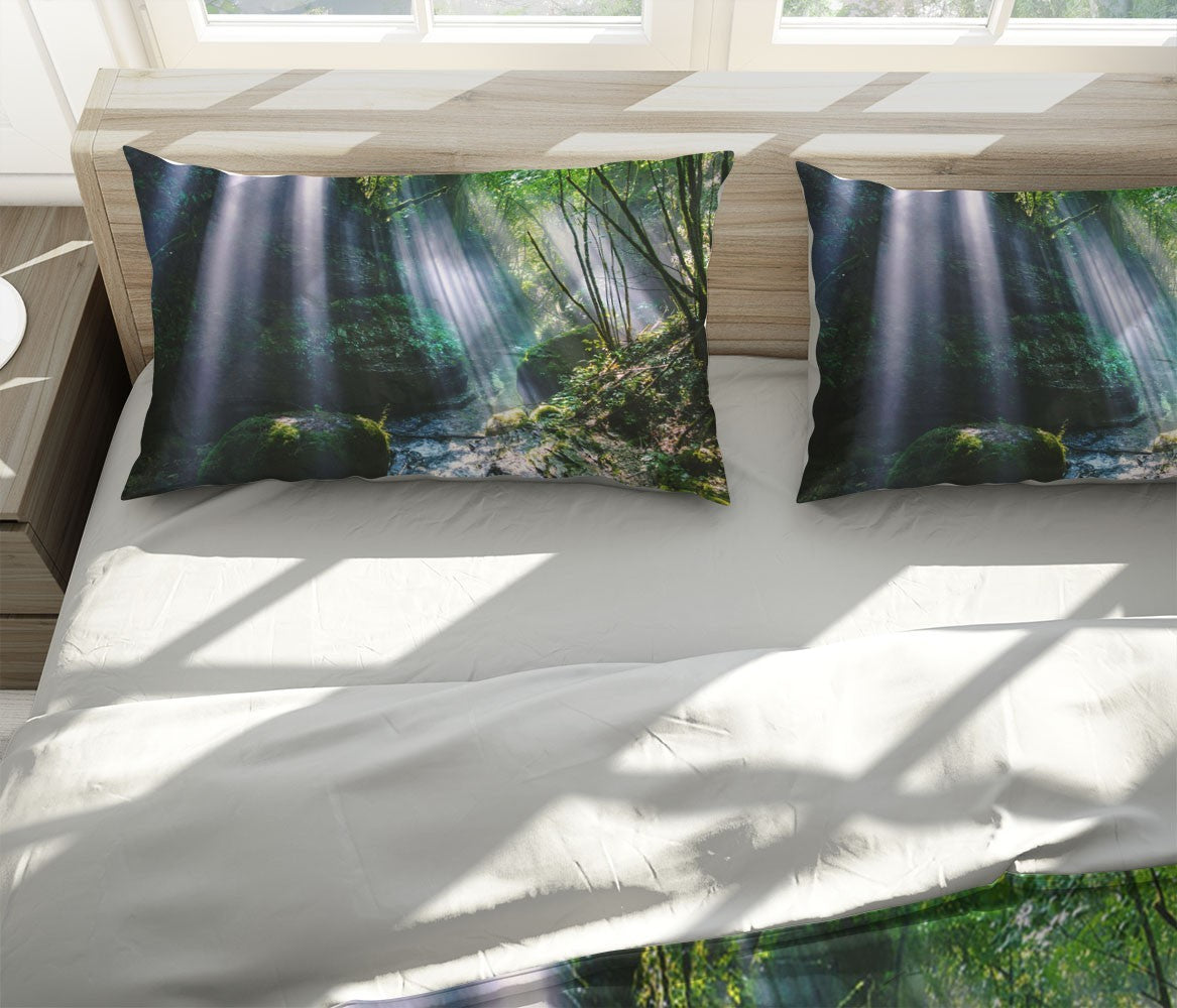 Creek Lights Duvet Cover Set W Pillow Cover, Green Nature Rivers & Lakes 3D Quilt Cover, Single Double Queen King Size Doona Cover