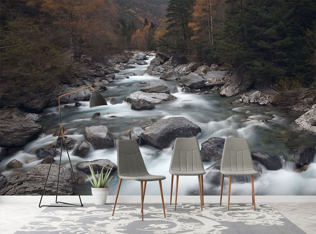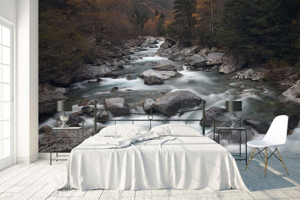 Creek River Nature Lakes Gray Wallpaper Mural,Self-Adhesive Peel And Stick 3D Wall Mural,Bedroom Removable Wall Decor