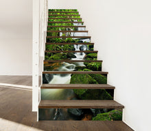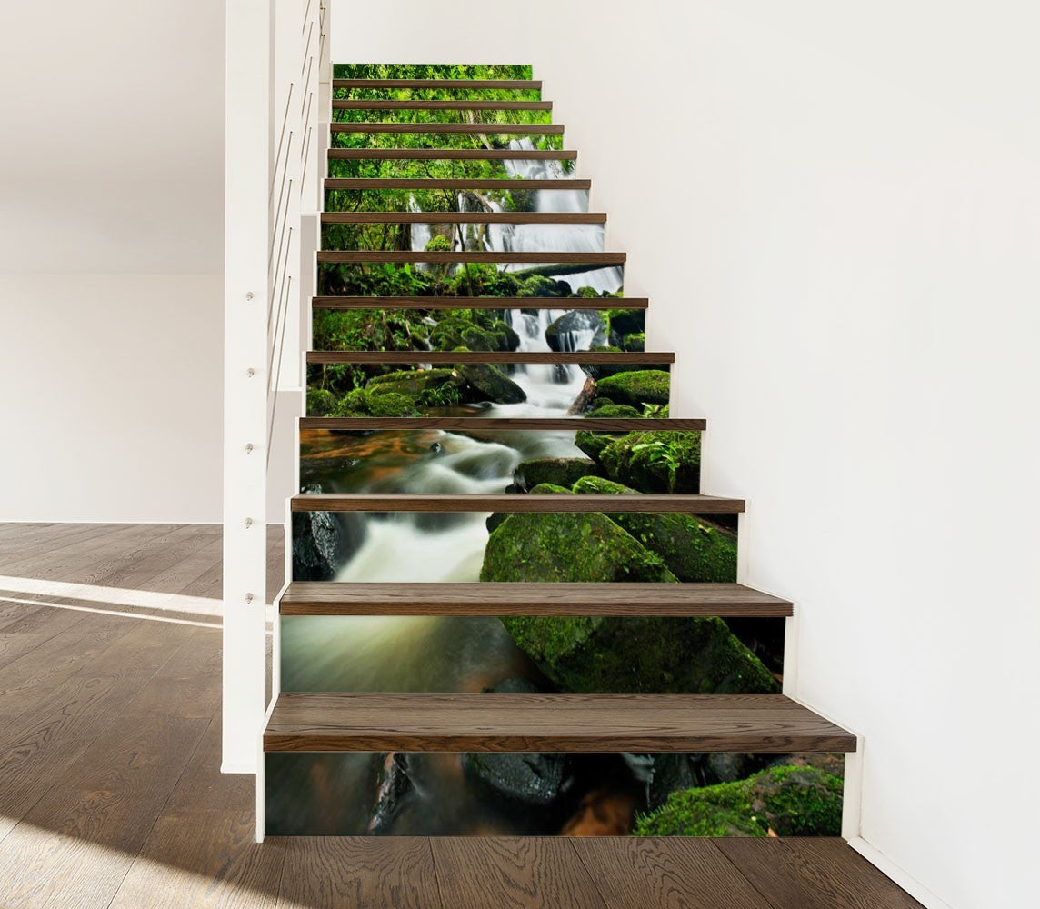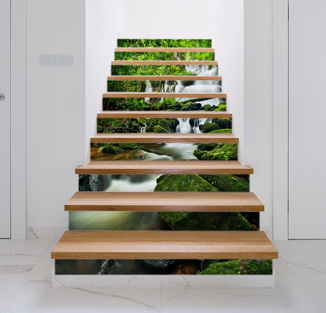 Creek Rocks Nature Waterfall Green Stair Riser Decals, Waterproof Removable Staircase Decals, Vinyl Peel And Stick Stairs Decal Stickers