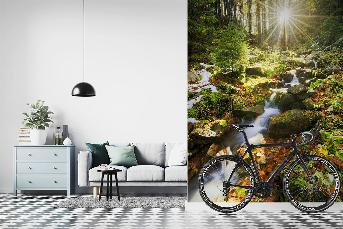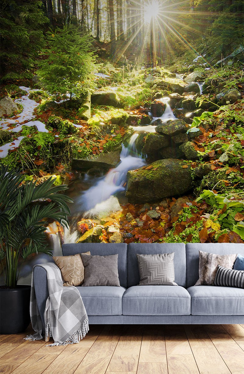 Creek Trees Nature Waterfall Green Wallpaper Mural,Self-Adhesive Peel And Stick 3D Wall Decor,Bedroom Australian Company Wall Decor