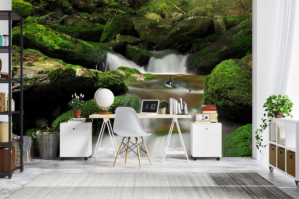 Creek Waterfall Nature Green Wallpaper Mural,Self-Adhesive Peel And Stick 3D Wall Art,Australian Company Removable Wall Decor