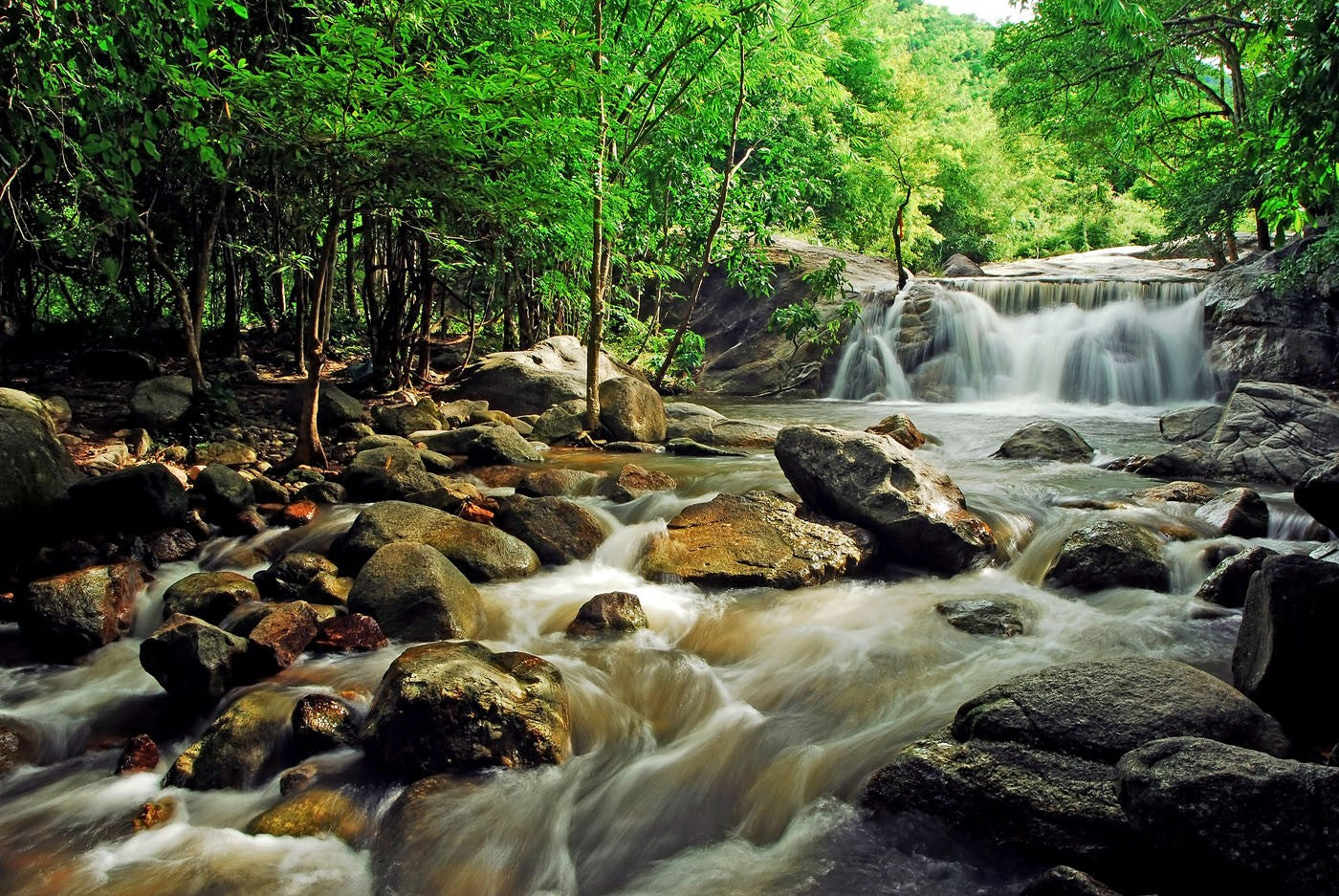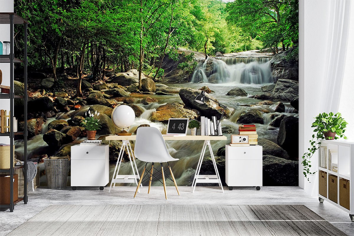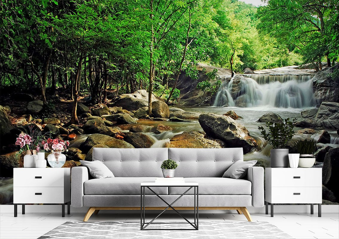 Creek Waterfall Nature Green Wallpaper Mural,Self-Adhesive Peel And Stick 3D Wall Mural,Removable Australian Company Wall Decor
