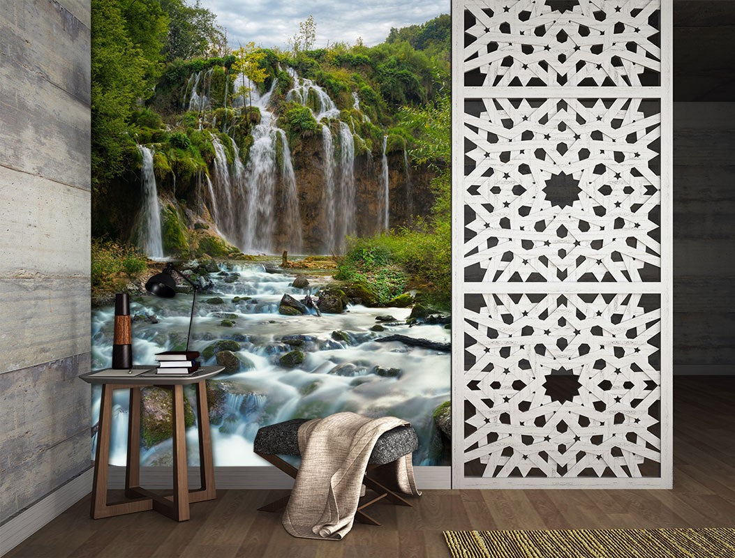 Creek Waterfall Nature Green Wallpaper Mural,Self-Adhesive Peel And Stick 3D Wall Decal,Bedroom Designer Wall Decor