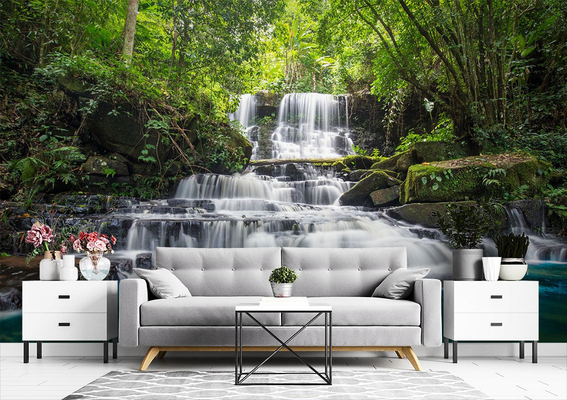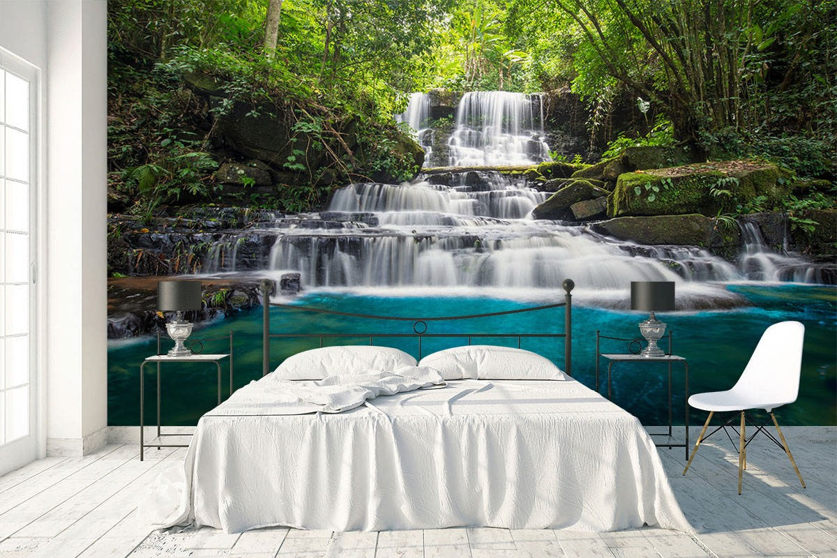 Creek Waterfall Nature Green Wallpaper Mural,Self-Adhesive Peel And Stick 3D Wall Decor,Designer Bedroom Wall Decor