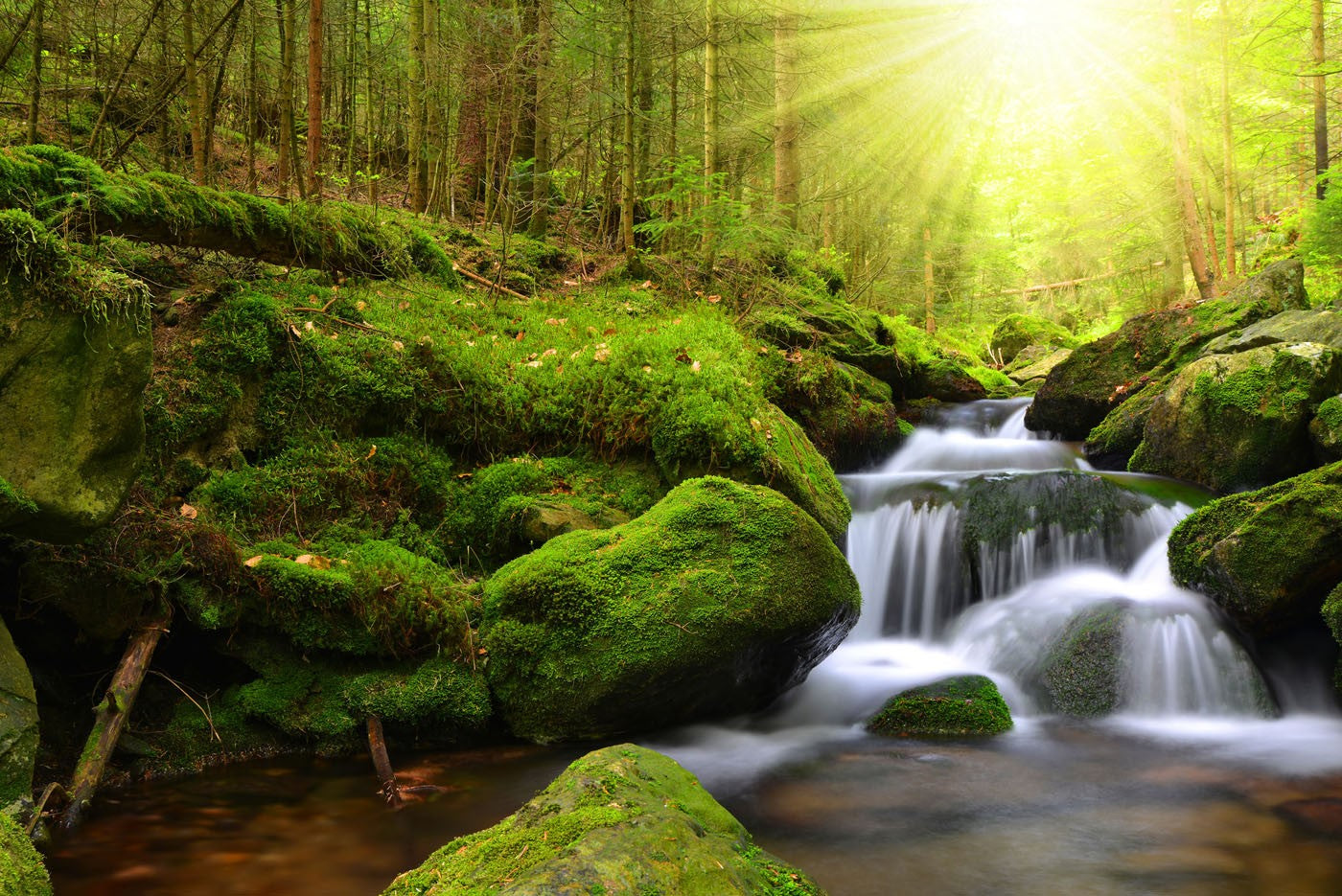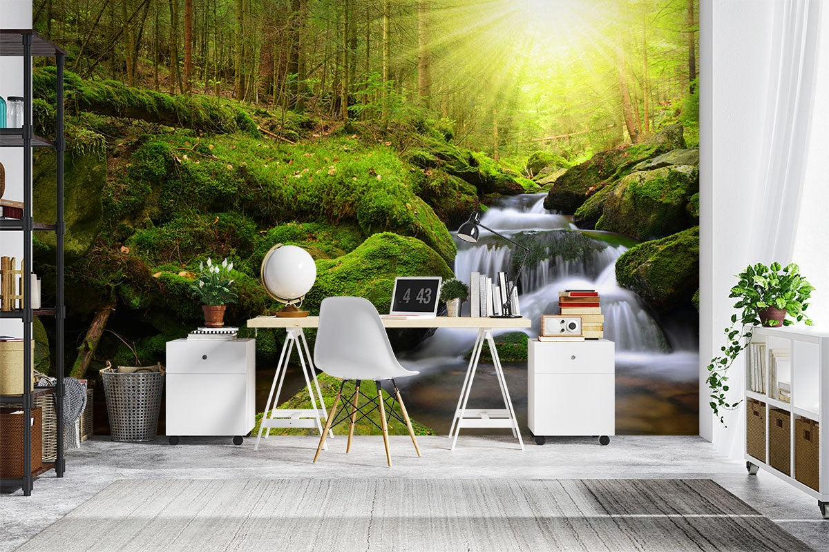 Creek Waterfall Nature Green Wallpaper Mural,Self-Adhesive Peel And Stick 3D Wall Decal,Australian Company Designer Wall Decor