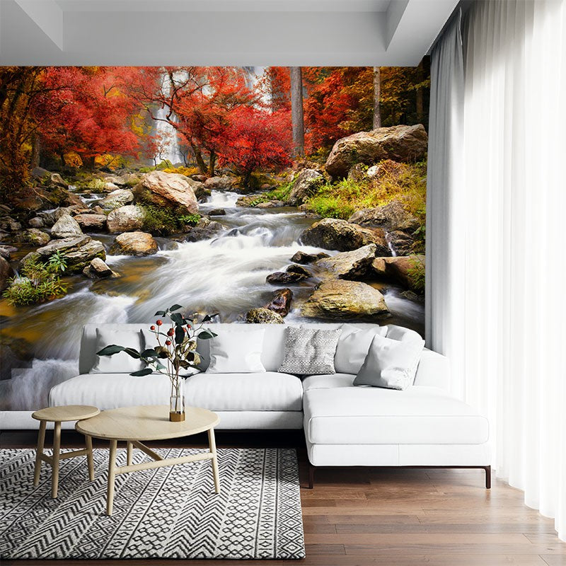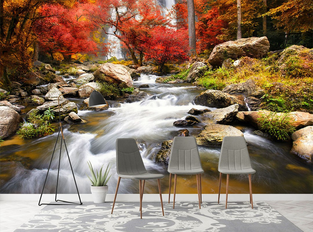 Creek Waterfall Nature Orange Wallpaper Mural,Self-Adhesive Peel And Stick 3D Wall Decor,Bedroom Designer Wall Decor