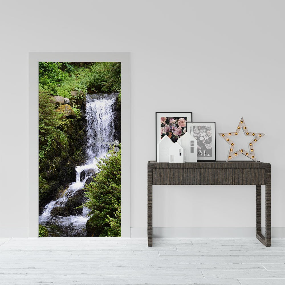 Creek Waterfall Nature Waterfall Door Wrap, Customized Mural For Door, Door Mural Sticker, Peel And Stick Door Cover, Removable Door Decal