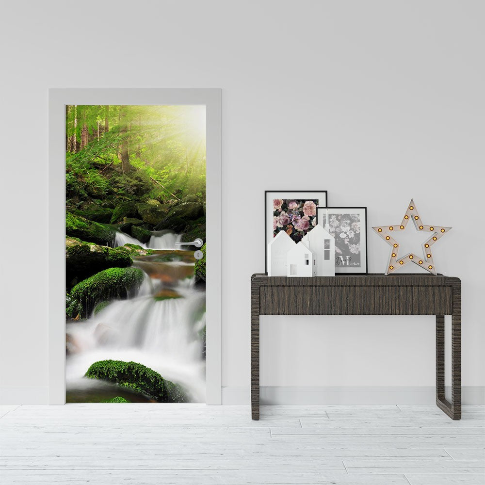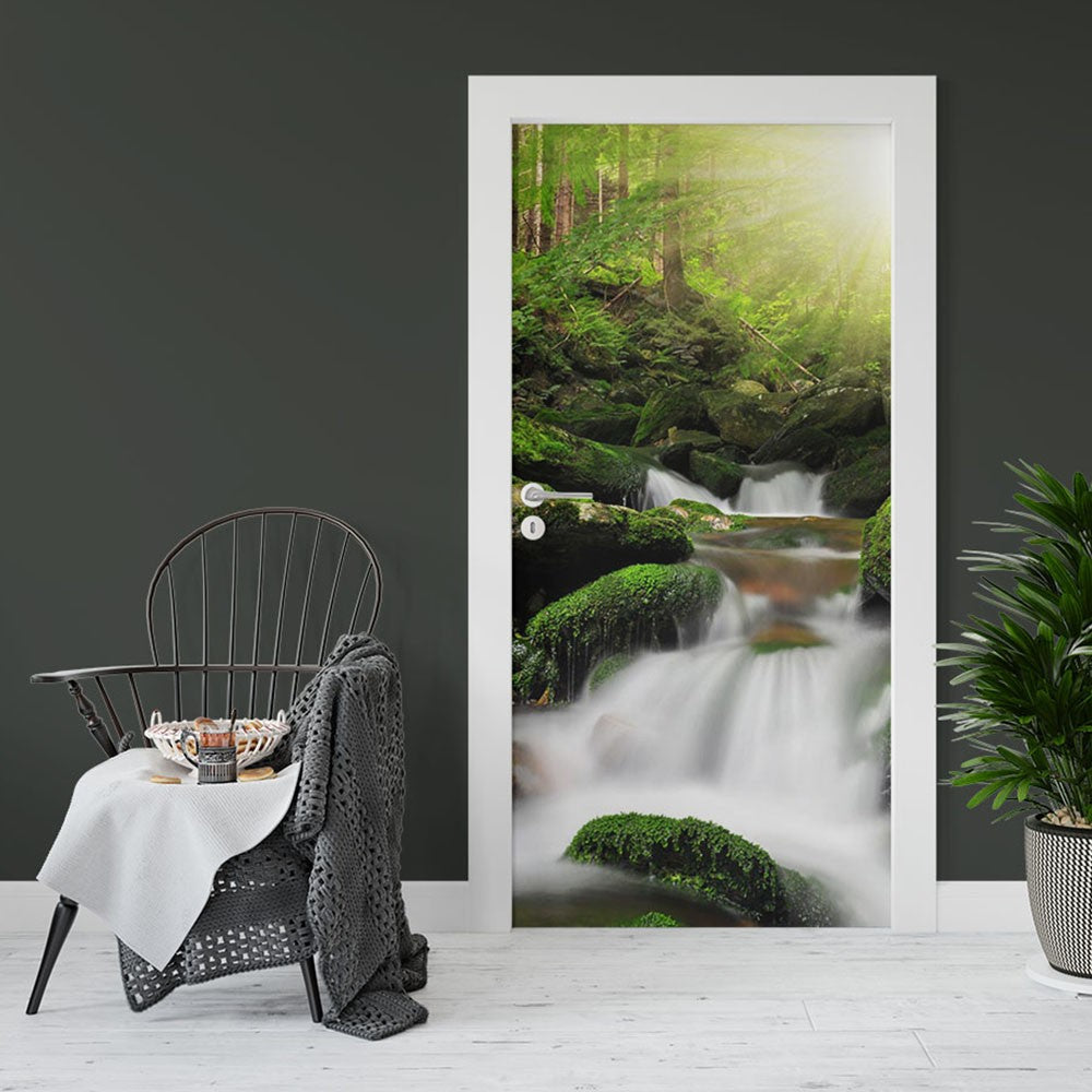 Creek Waterfall Nature Waterfall Door Wrap, Customized Mural For Door, Door Mural Sticker, Peel And Stick Door Cover, Removable Door Decal