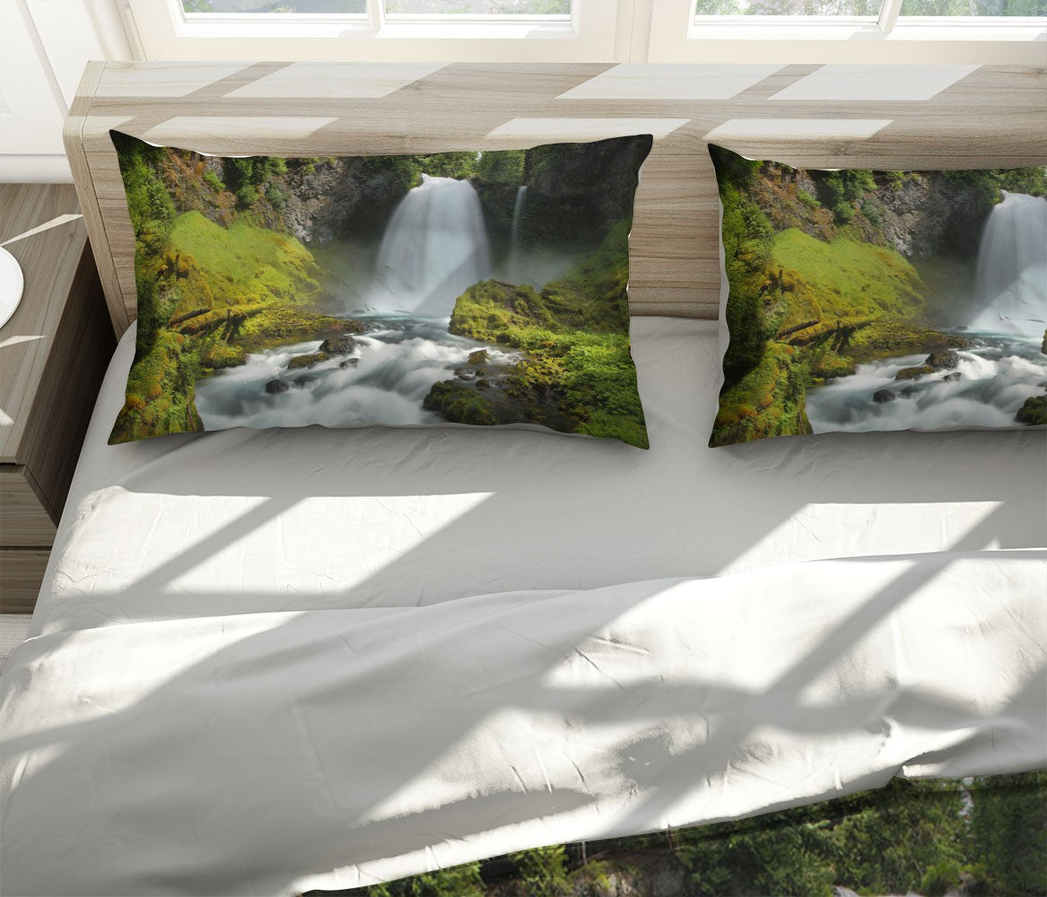 Creek Waterfall Nature Green 3D Duvet Cover Set W Pillow Cover, Single Double Queen King Size, Printed Cotton Quilt Doona Cover 3 Pcs