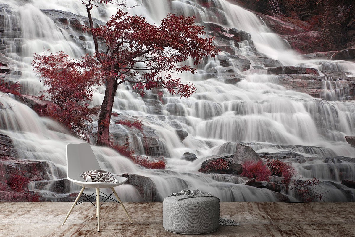 Creek Waterfall Nature White Wallpaper Mural,Self-Adhesive Peel And Stick 3D Wall Decal,Removable Bedroom Wall Decor
