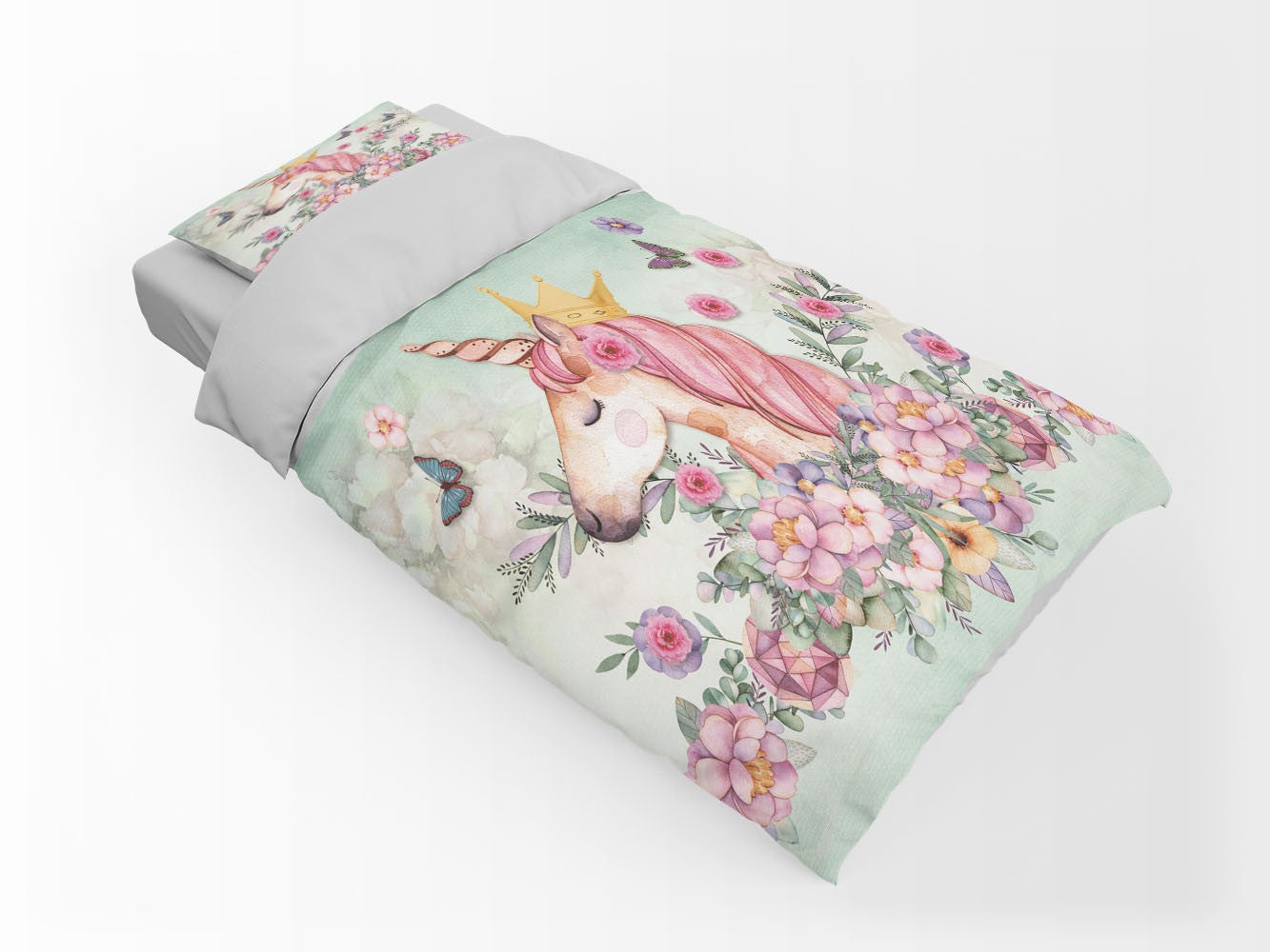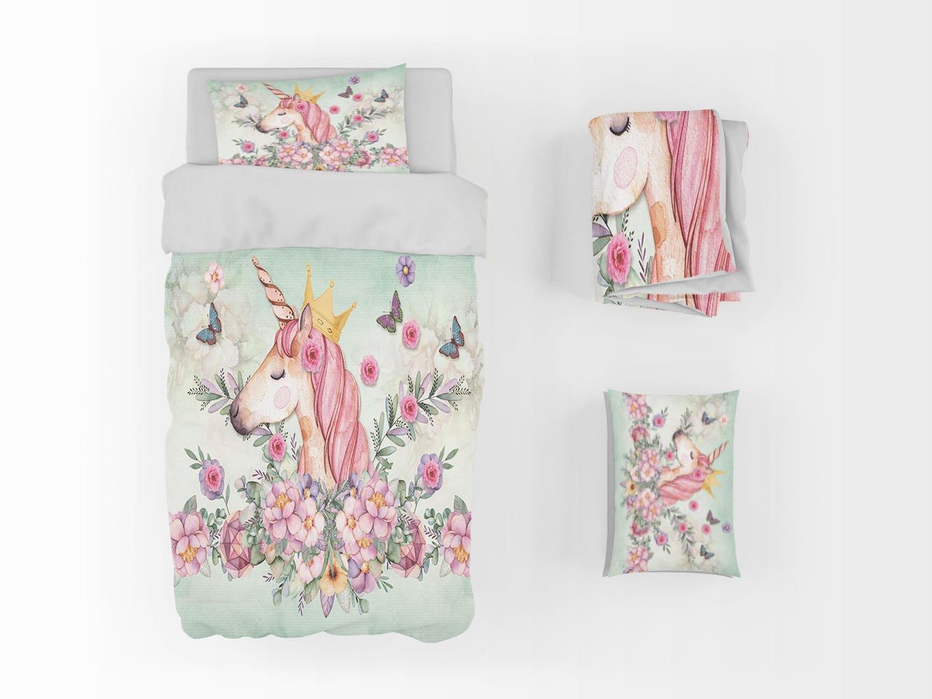 Crowned Unicorn Kids Fantasy Bright 3D Duvet Cover Set W Pillow Cover, Single Double Queen King Size, Printed Cotton Quilt Doona Cover 3 Pcs