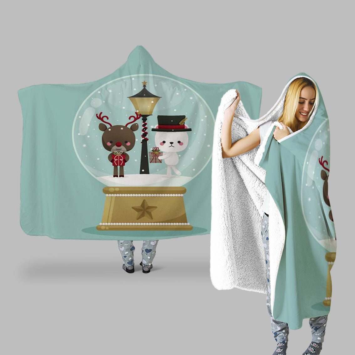 Crystal Ball Bear Kids Cartoon Green Personalized Hooded Throw Blanket Fleece Hoodie Cape