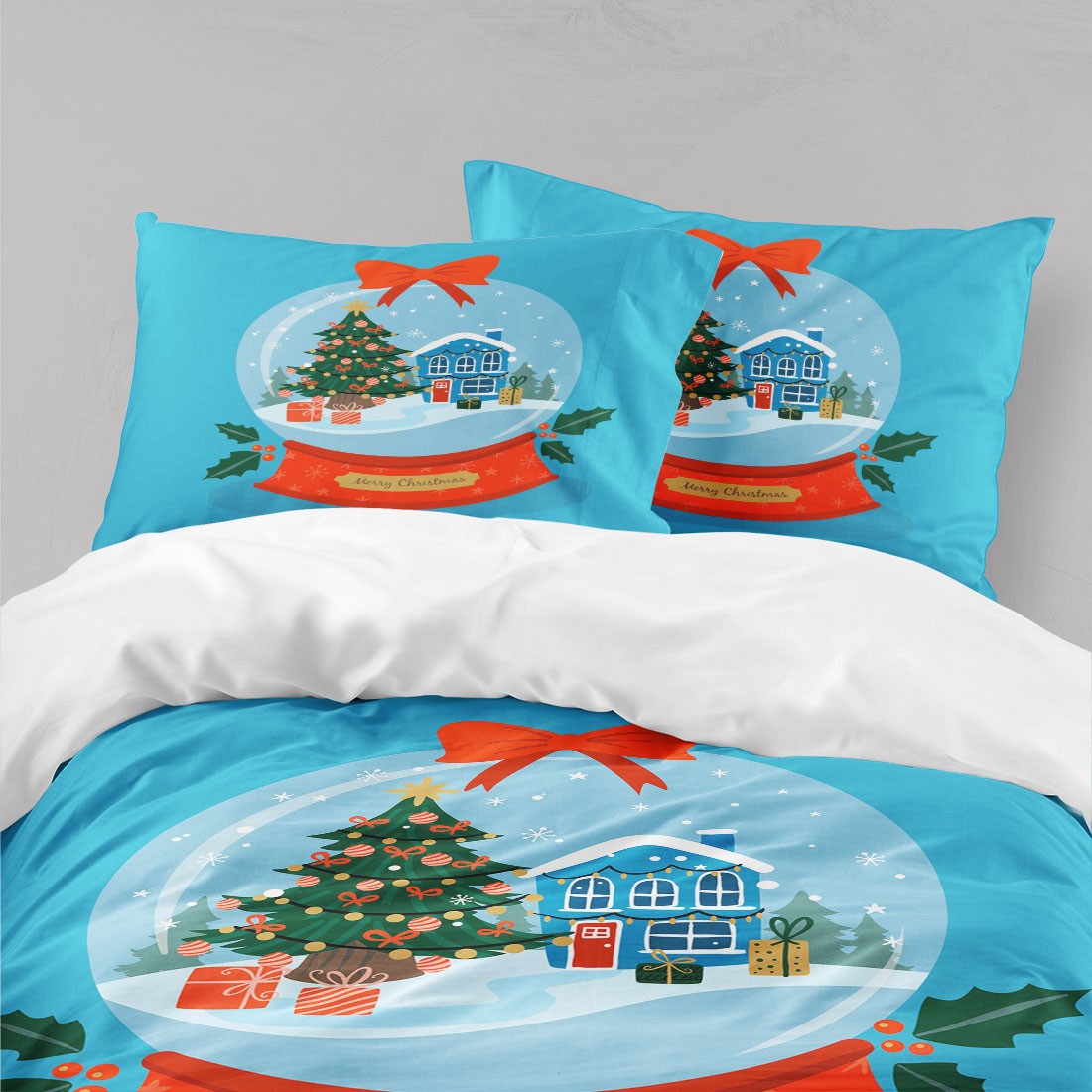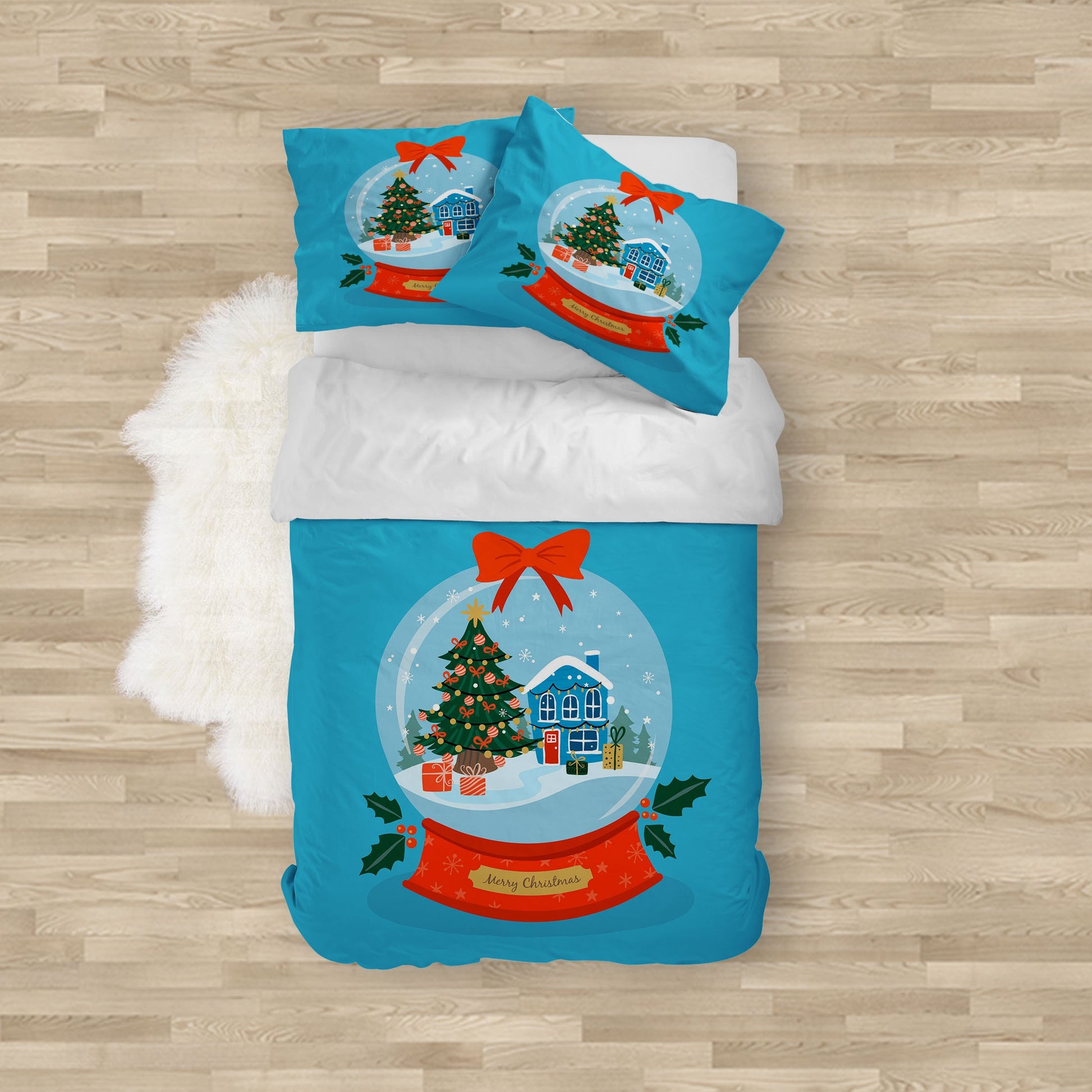Crystal Ball Christmas Tree Duvet Cover Set W Pillowcases, Blue Kids Cartoon 3D Quilt Cover, 3Pc Single Double Queen King Size Doona Cover