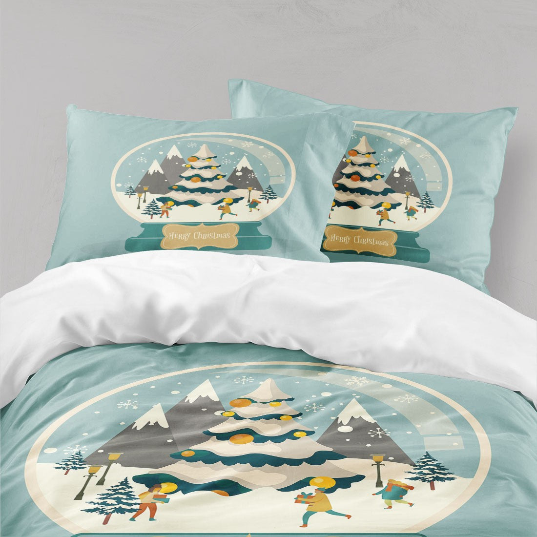 Crystal Ball Christmas Tree Duvet Cover Set W Pillowcases, Green Kids Cartoon 3D Quilt Cover, 3Pc Single Double Queen King Size Doona Cover