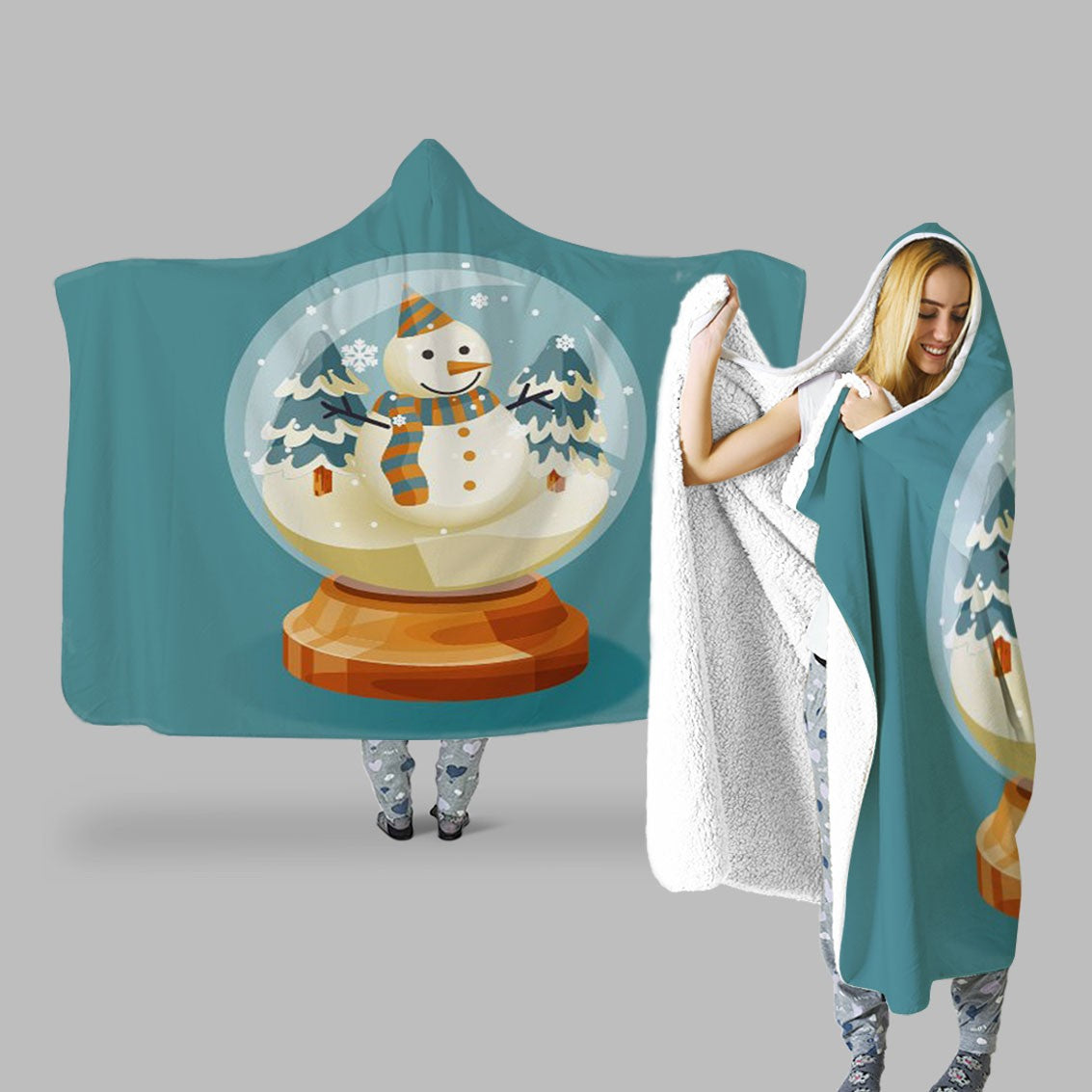 Crystal Ball Snowman Kids Cartoon Blue Personalized Hooded Throw Blanket Fleece Hoodie Cape