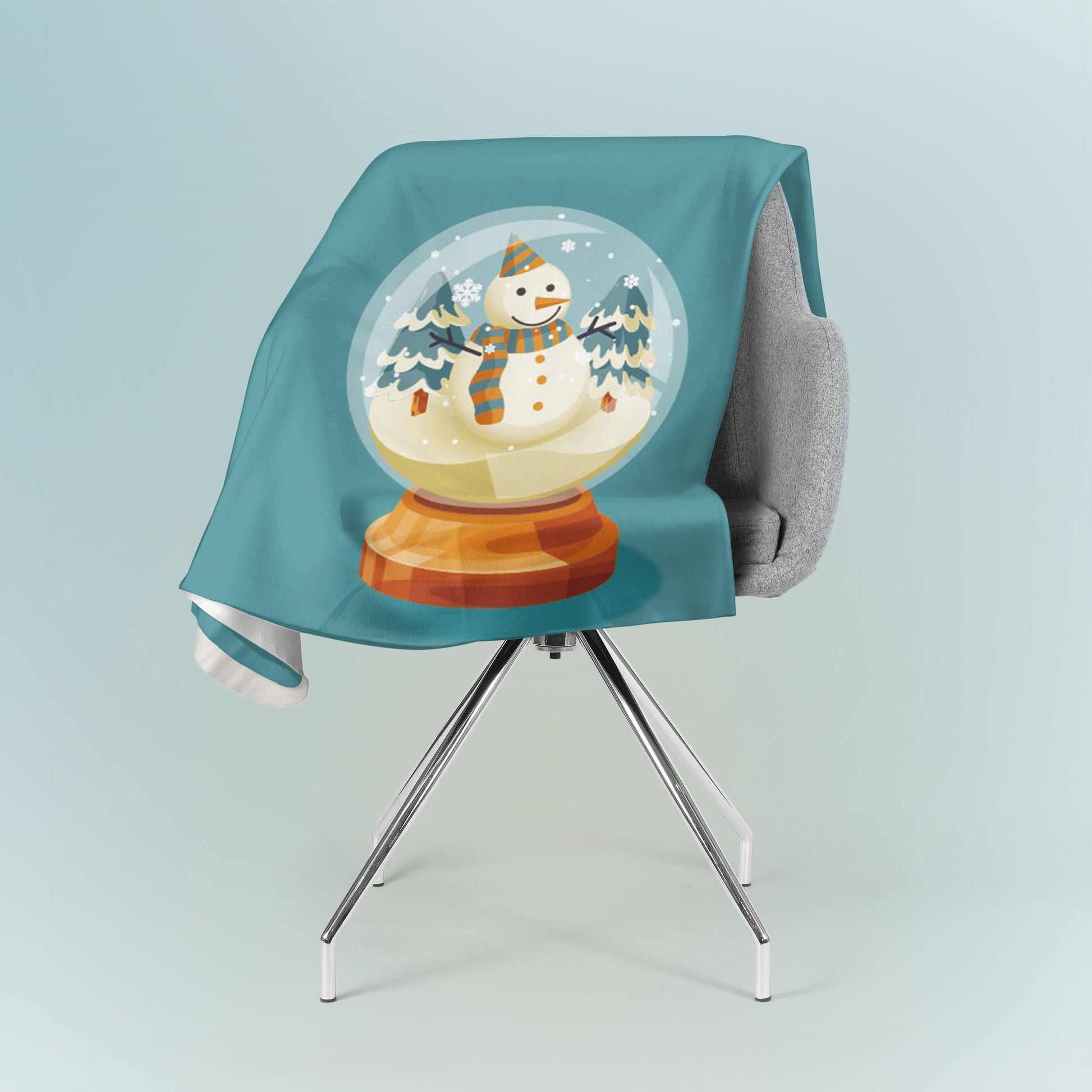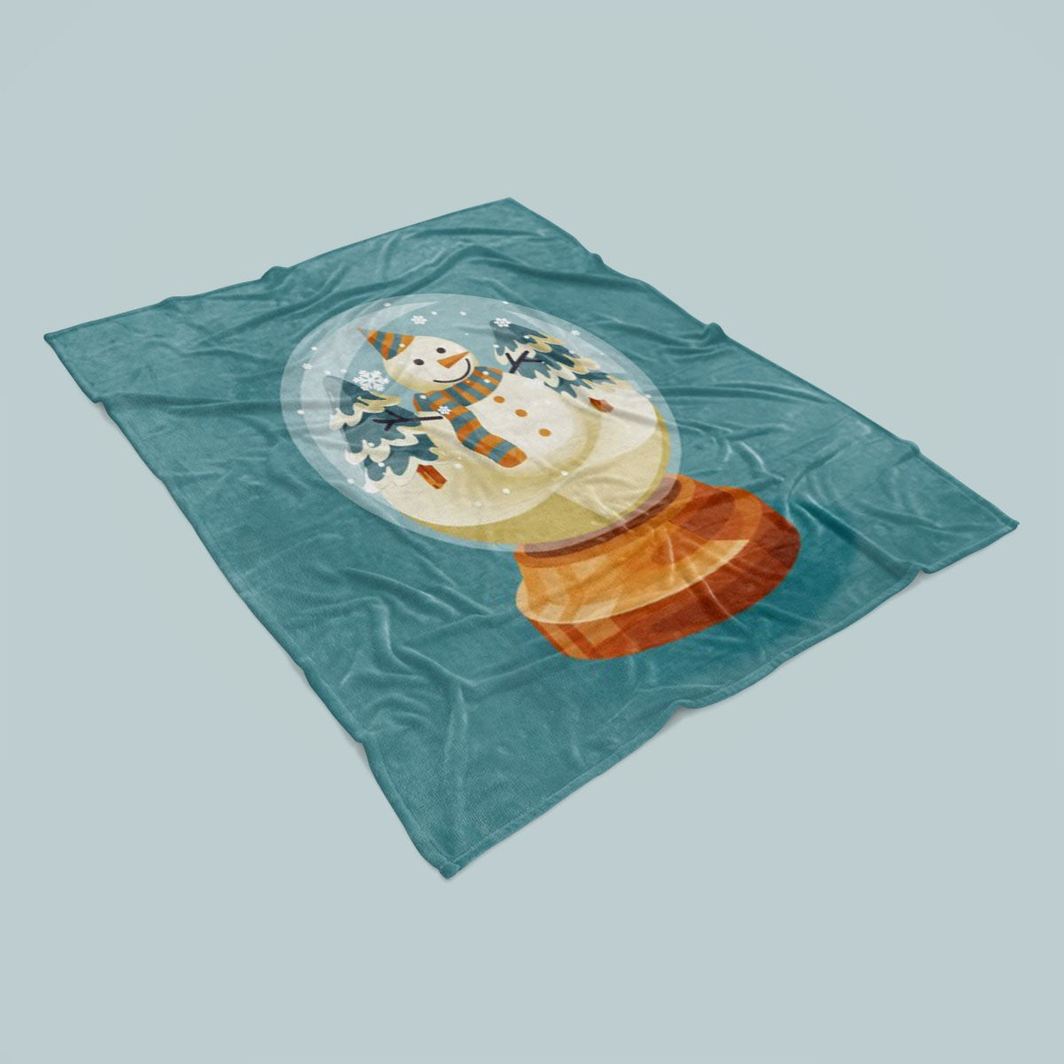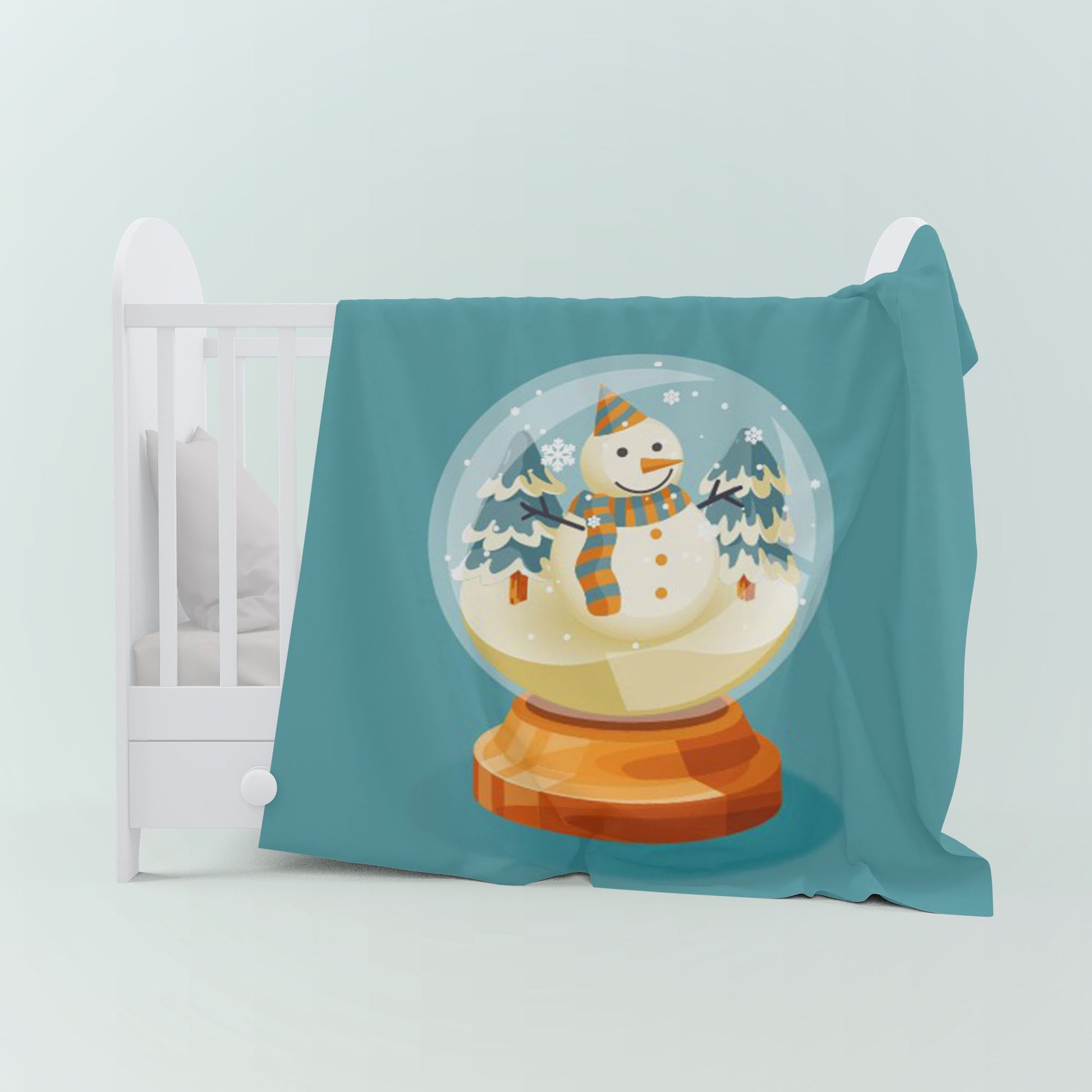 Crystal Ball Snowman Kids Cartoon Blue Personalized Throw Blanket Custom Fleece Sherpa Throw