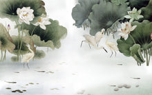 Japanese Customize size of Japanese Lotus Lake Crane Painting, Green Chinoiserie Art Wallpaper Mural,Self-Adhesive Peel And Stick 3D Wall Decal,Removable Designer Wall Decor