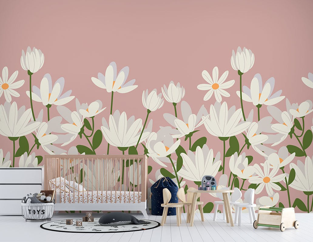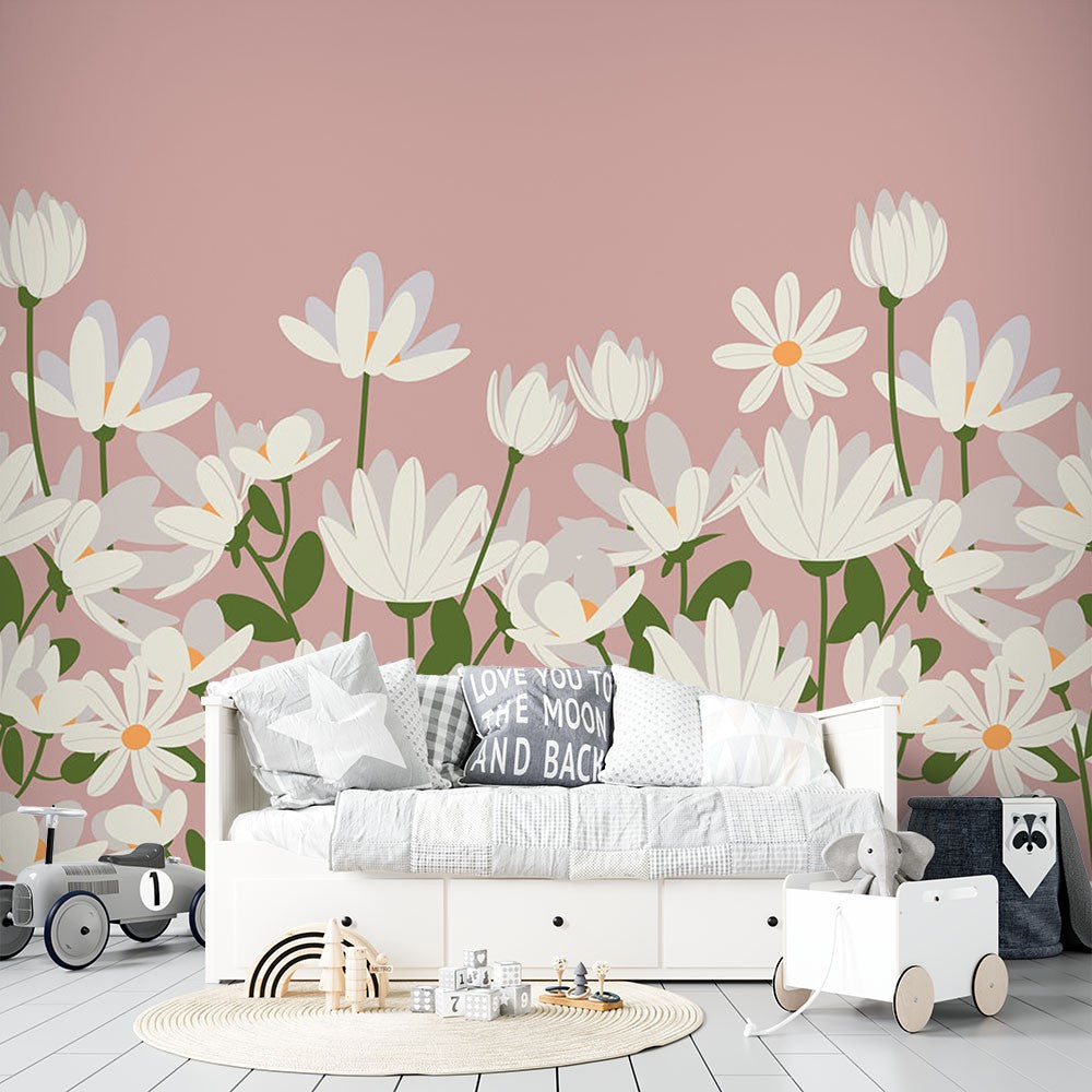 Daisy Kids Colorful Pink Wallpaper Mural,Self-Adhesive Peel And Stick 3D Wall Decor,Designer Australian Company Wall Decor