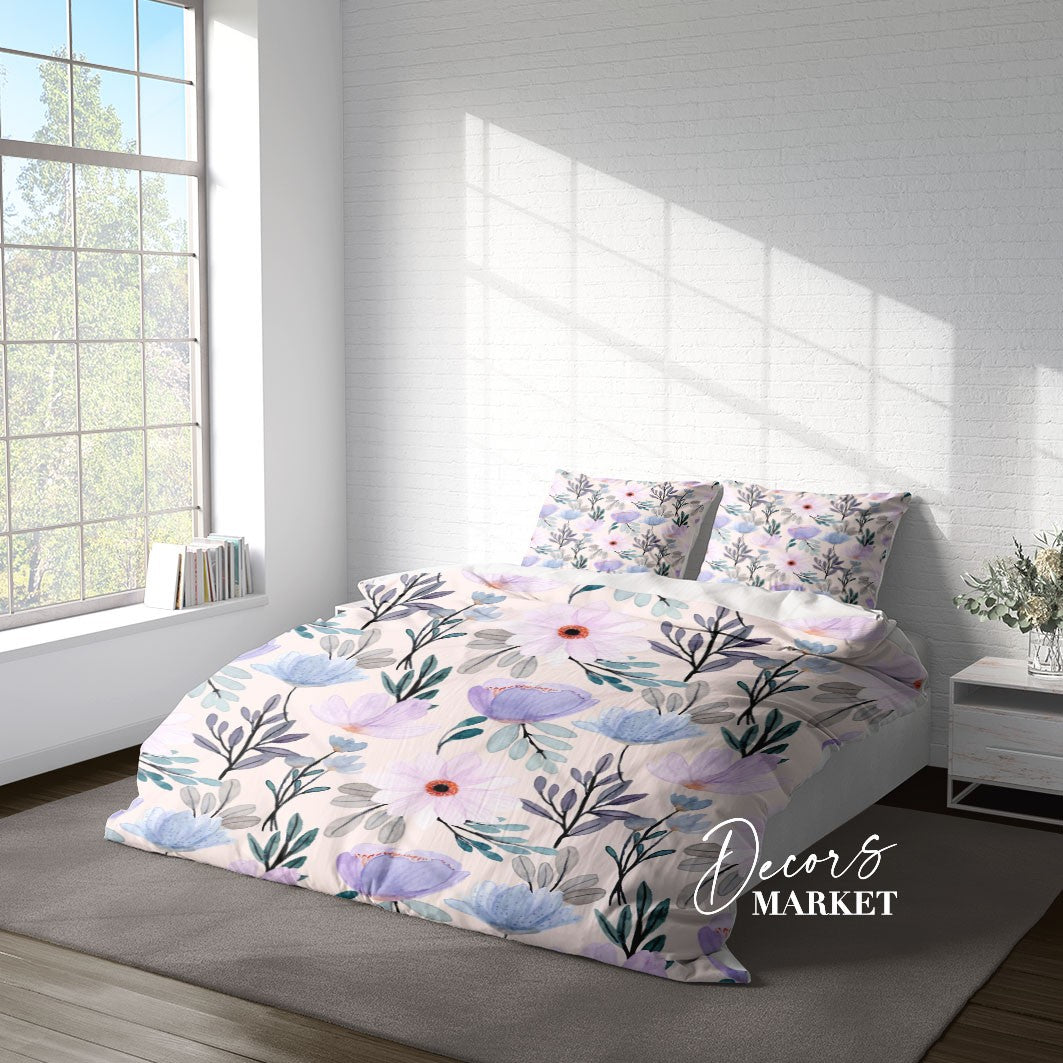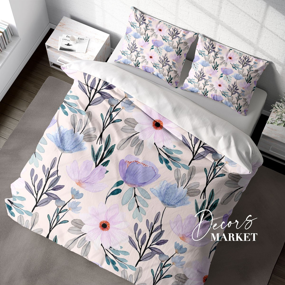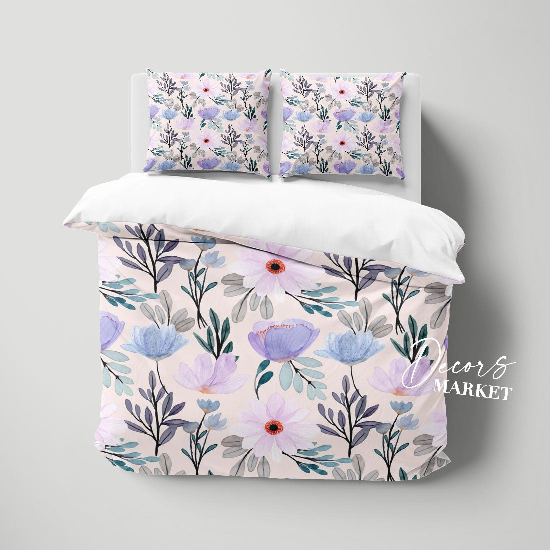 Daisy Poppy Flower Duvet Cover Set w Pillowcases, Purple Floral Flowers 3D Quilt Cover, 3pc Single Double Queen King Size Doona Cover