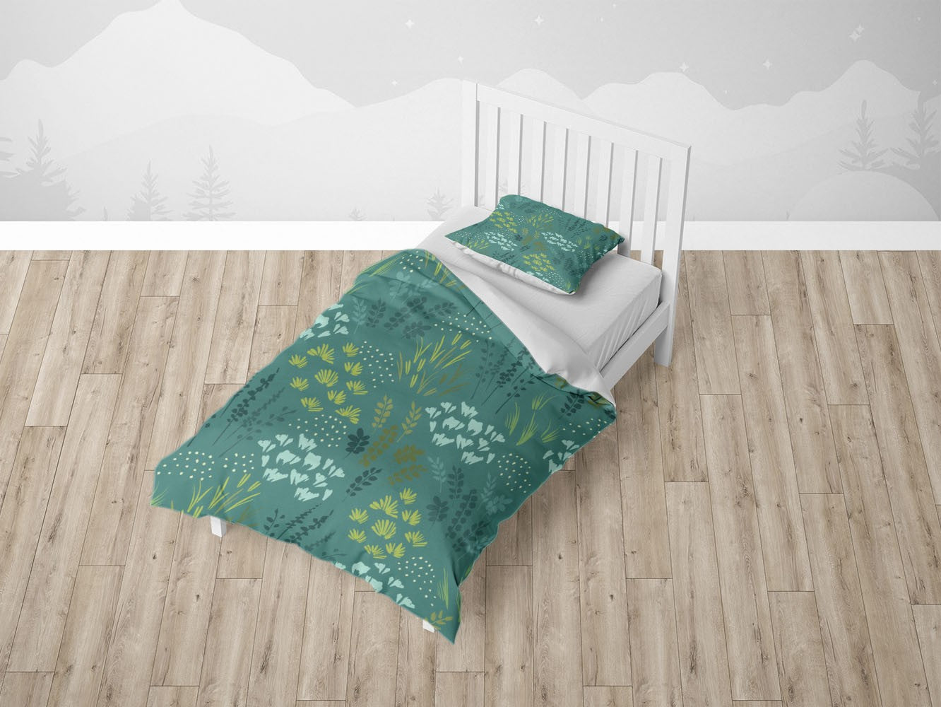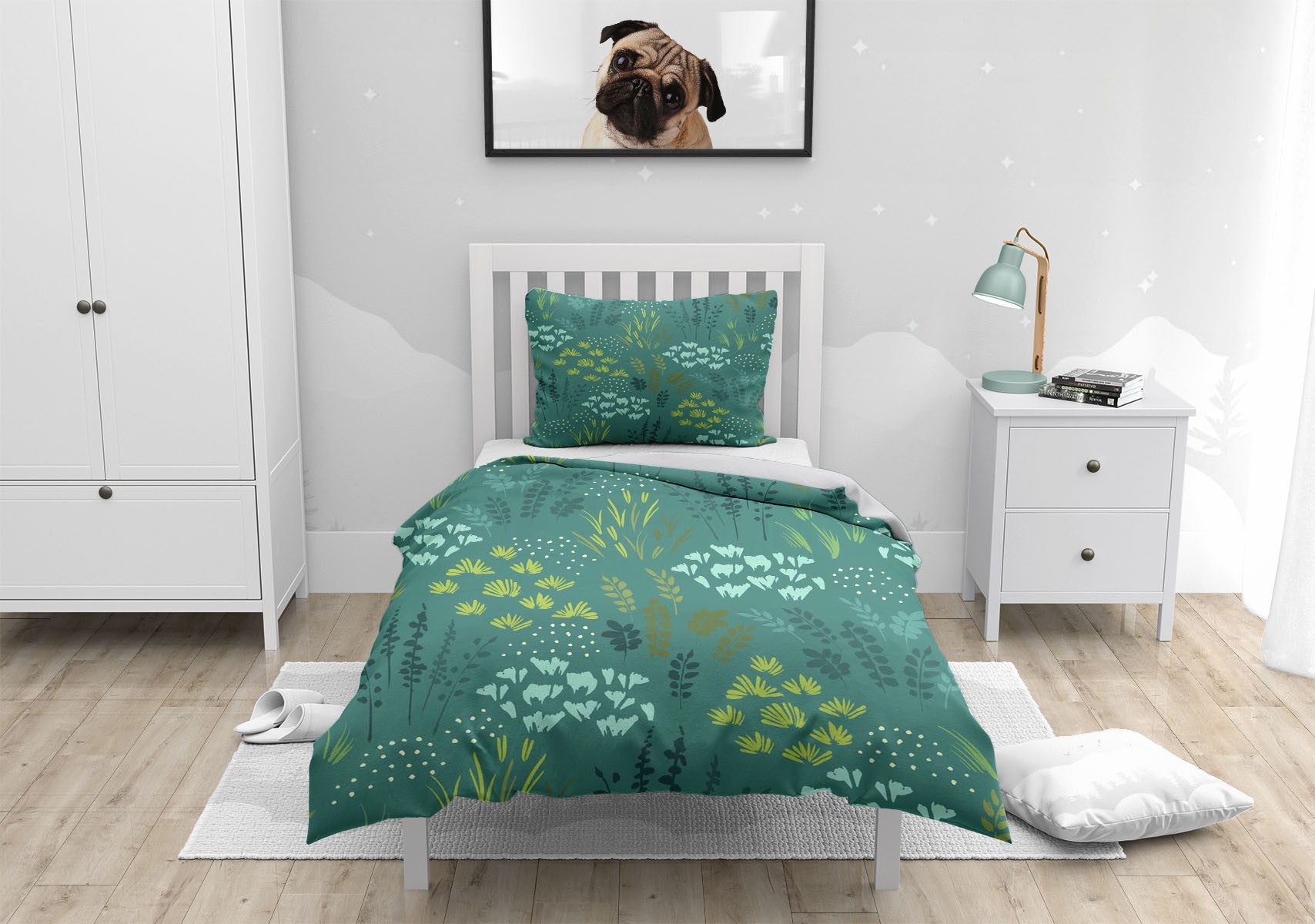 Dandelion Leaf Duvet Cover Set w Pillowcases, Green Kids Patterns 3D Quilt Cover, 3pc Single Double Queen King Size Doona Cover