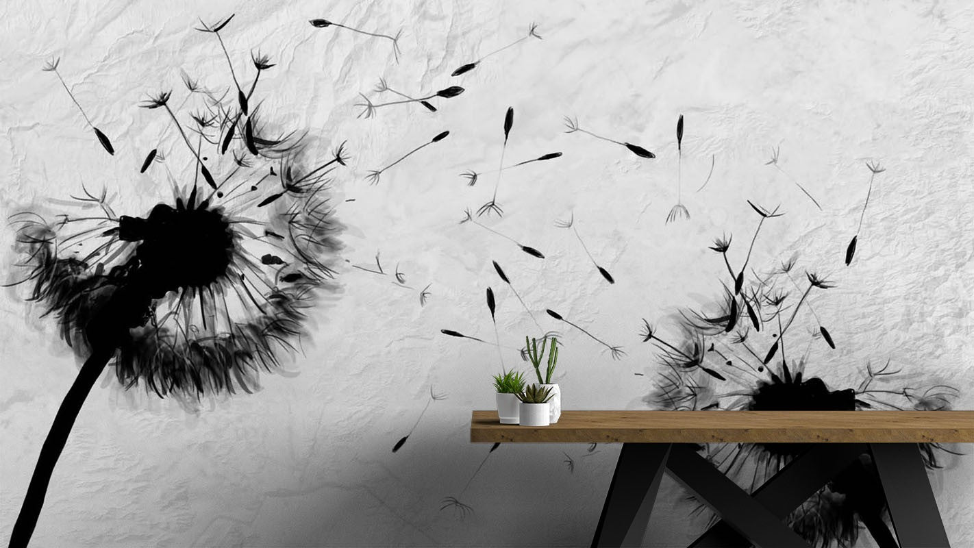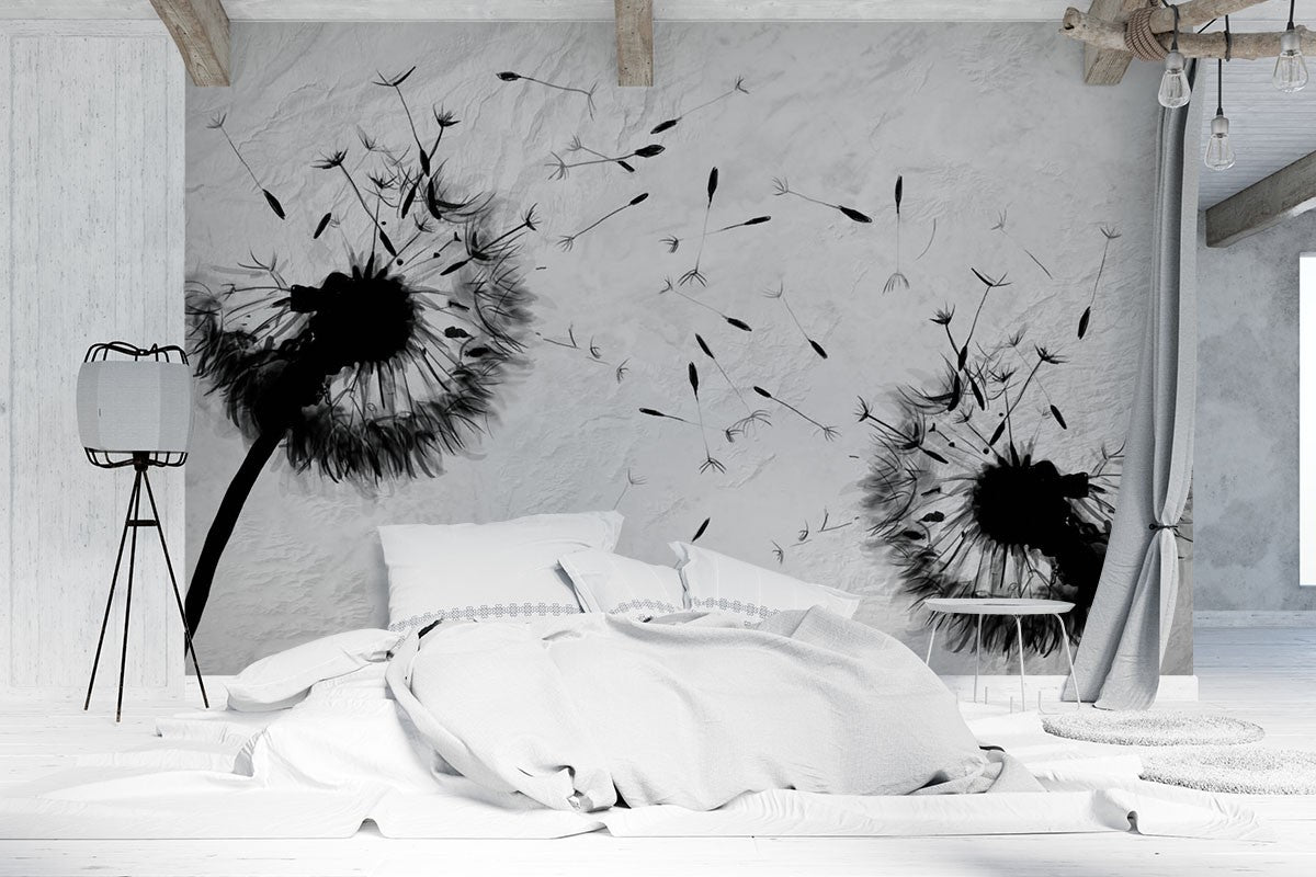 Dandelion Shadow Art Contemporary Black And White Wallpaper Mural