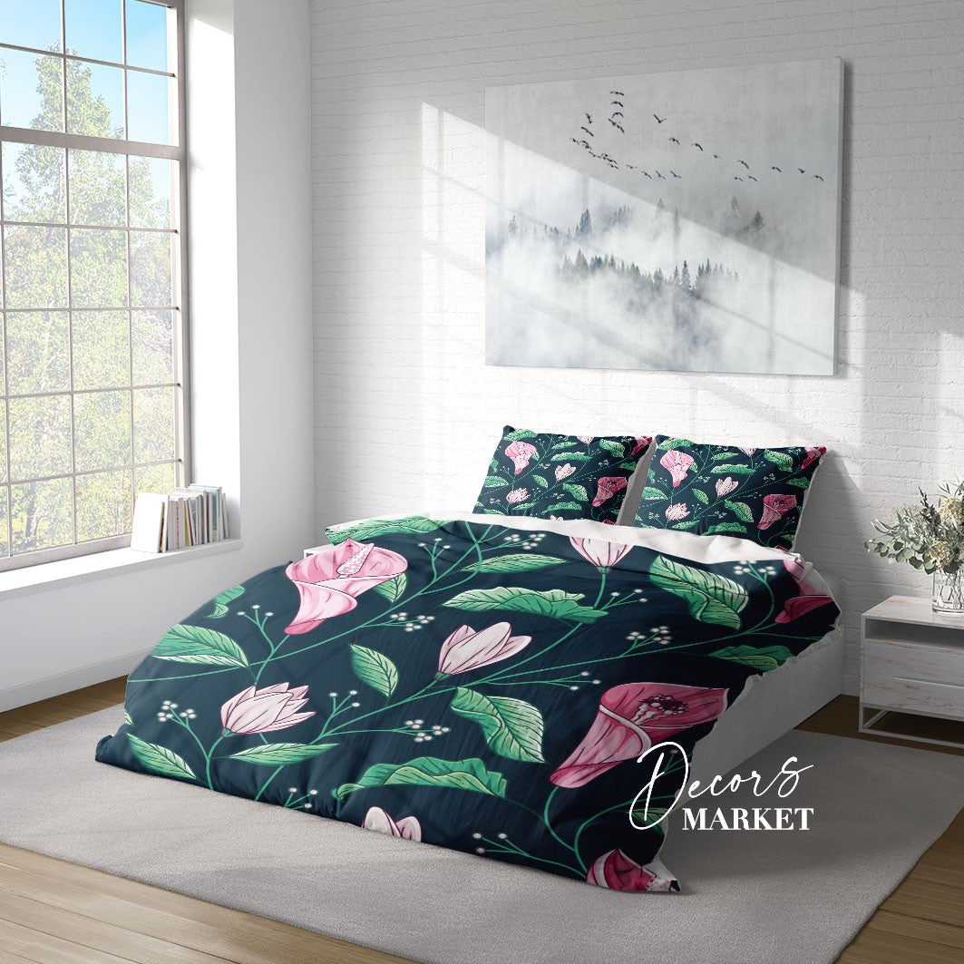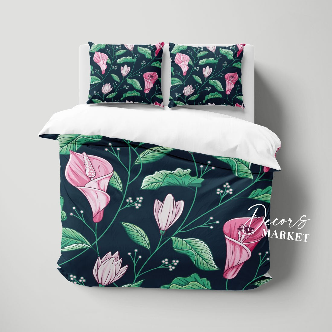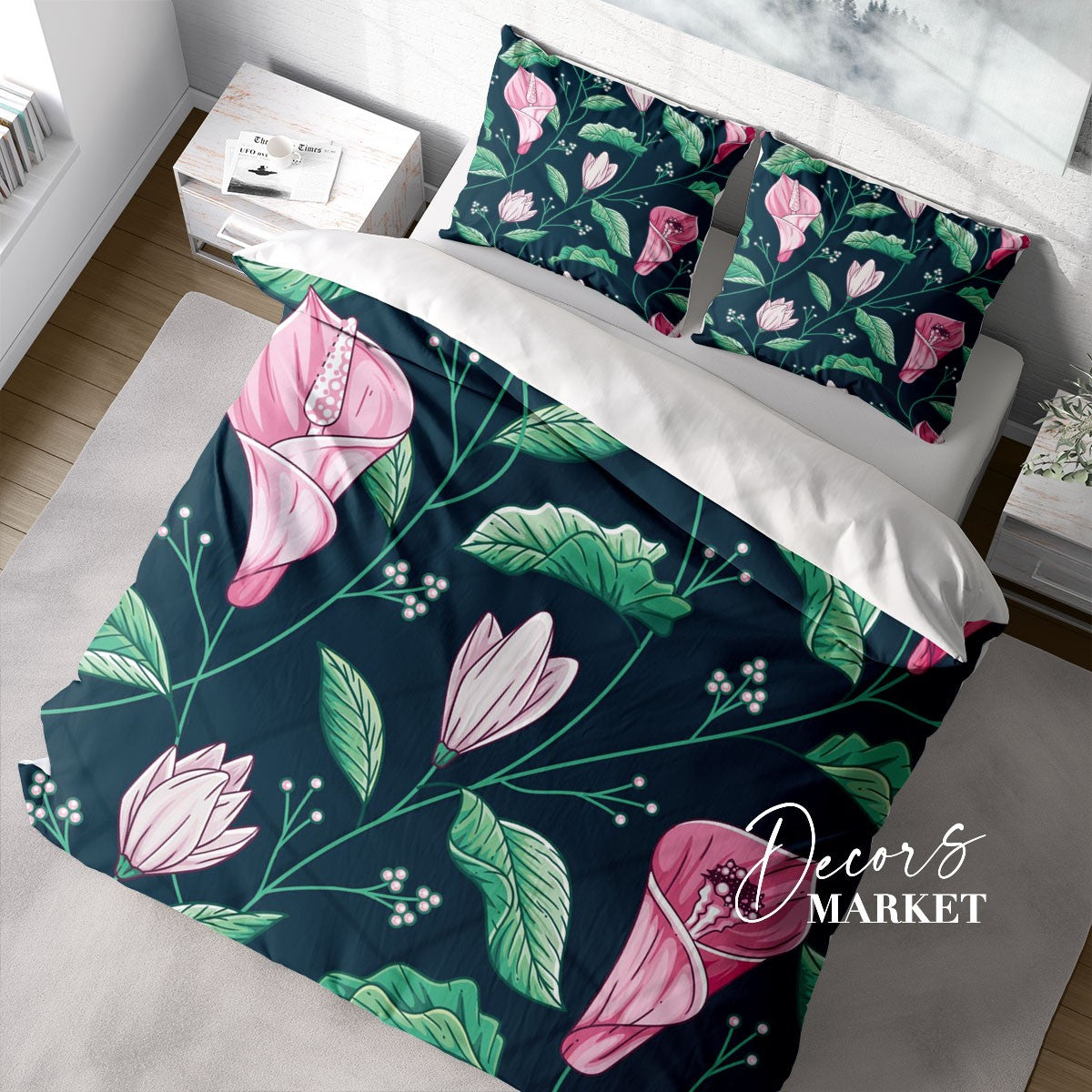 Dark Calla Lilies Duvet Cover Set w Pillowcases, Pink Floral Patterns 3D Quilt Cover, 3pc Single Double Queen King Size Doona Cover