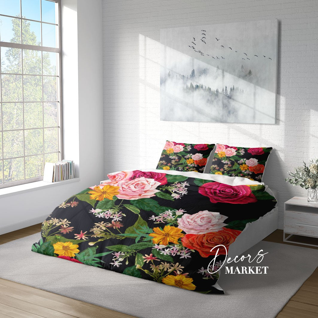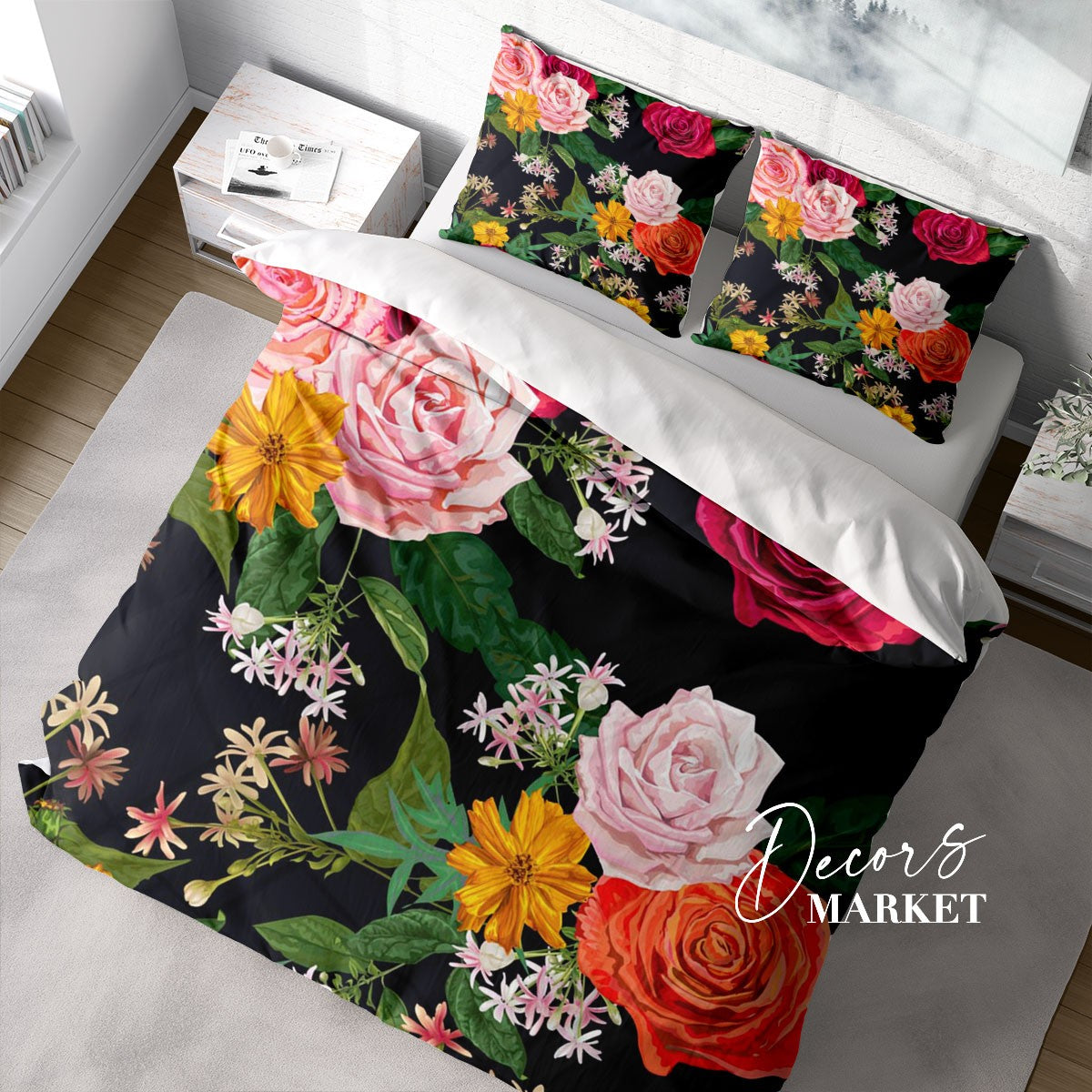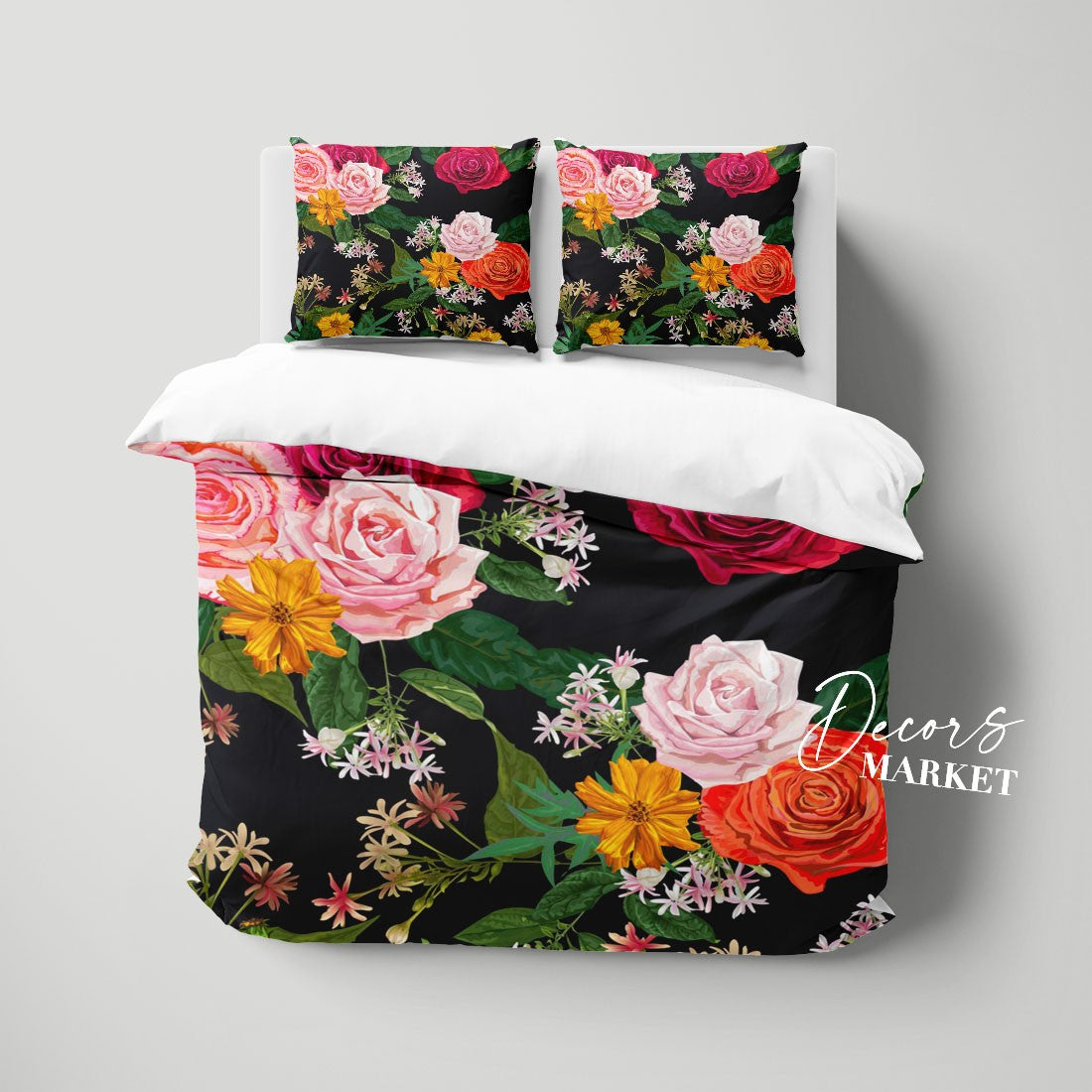 Dark Dutch Floral Roses Duvet Cover Set w Pillowcases, Red Floral Flowers 3D Quilt Cover, 3pc Single Double Queen King Size Doona Cover