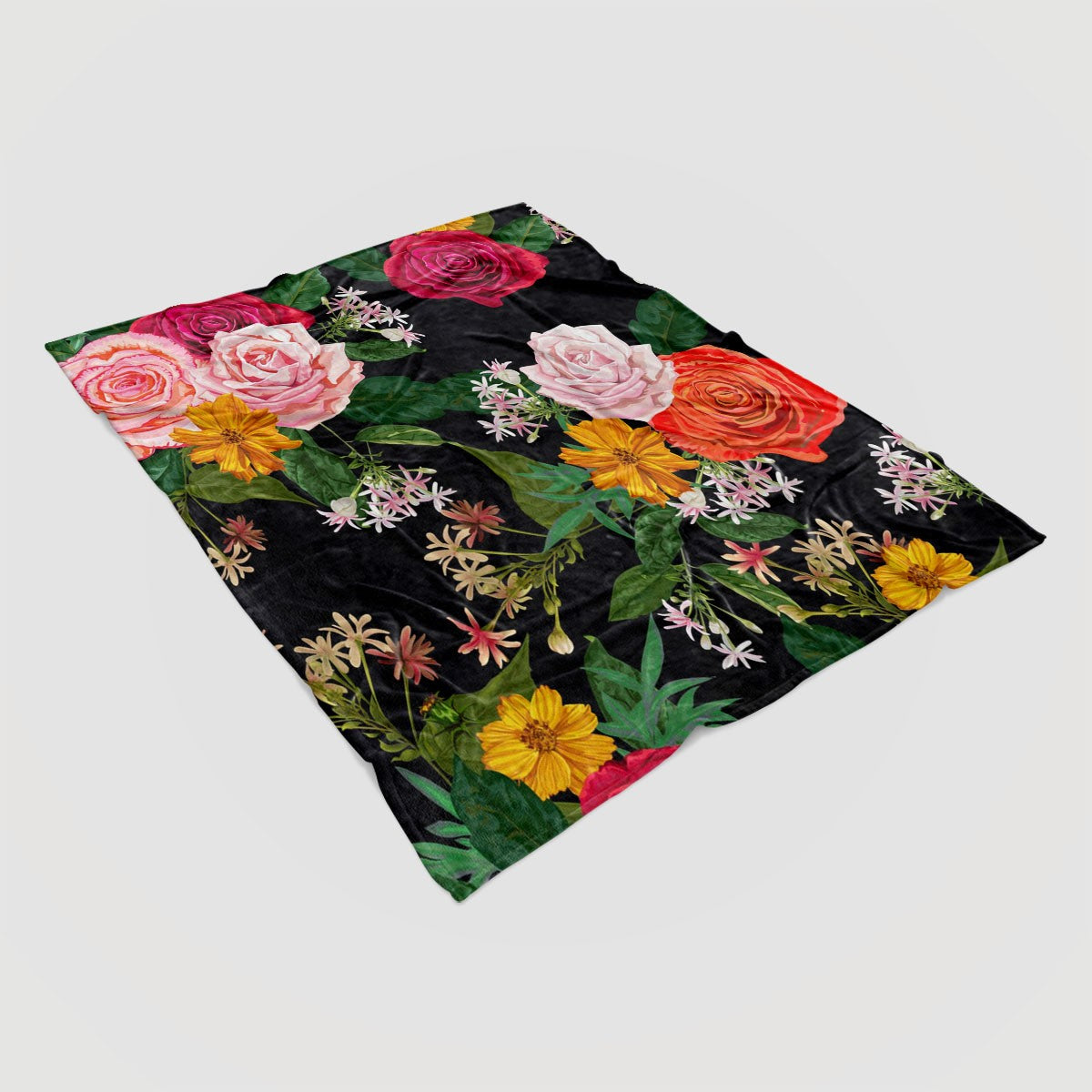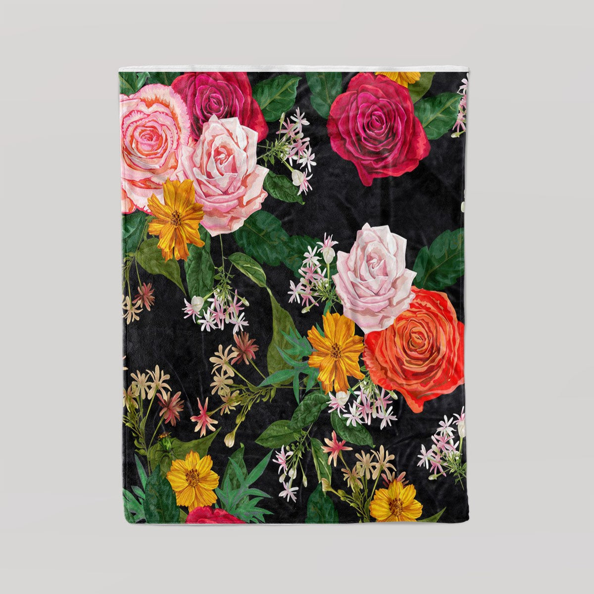 Dark Floral Roses Floral Flowers Red Personalized Throw Blanket Custom Fleece Sherpa Throw