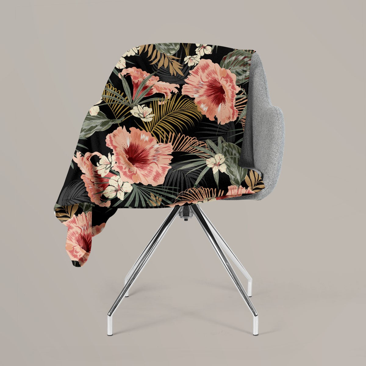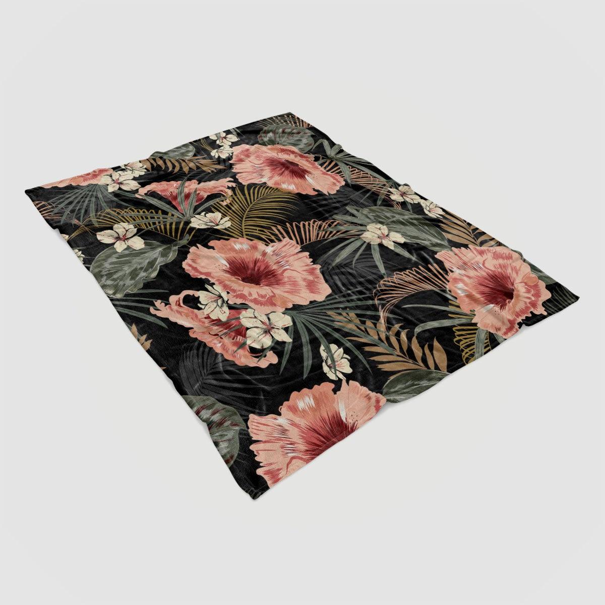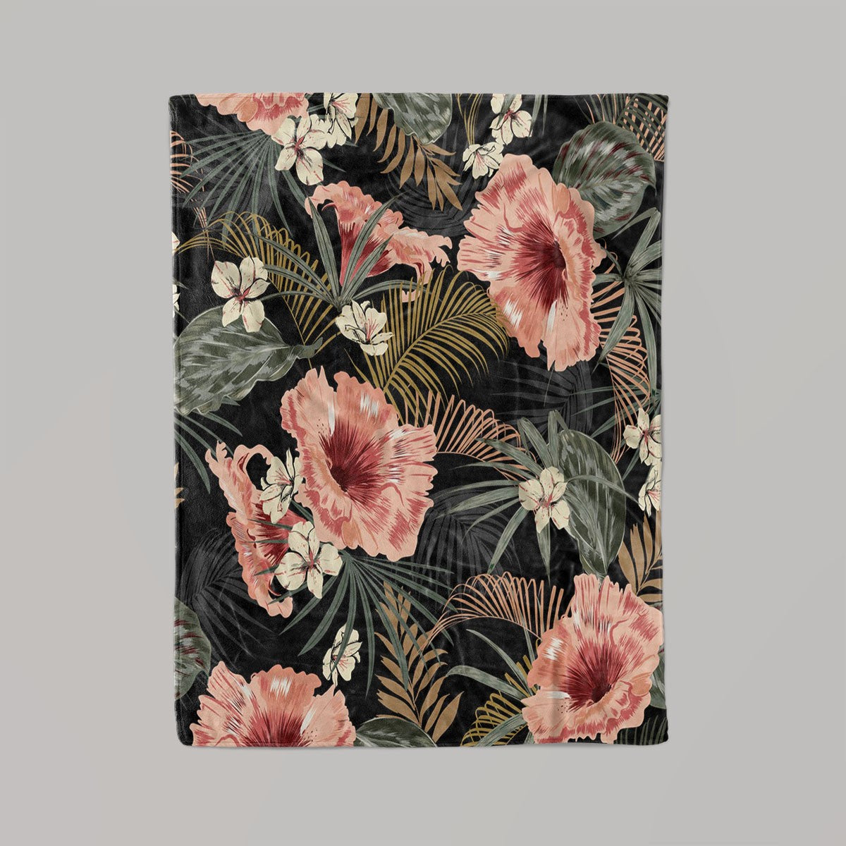 Dark Tropical Flower Floral Patterns Black Personalized Throw Blanket Custom Fleece Sherpa Throw
