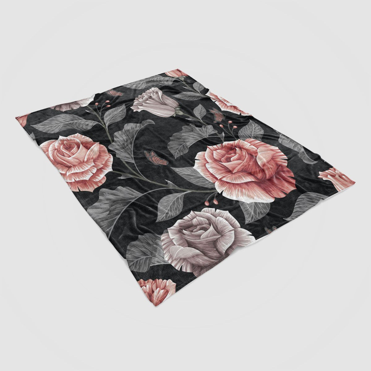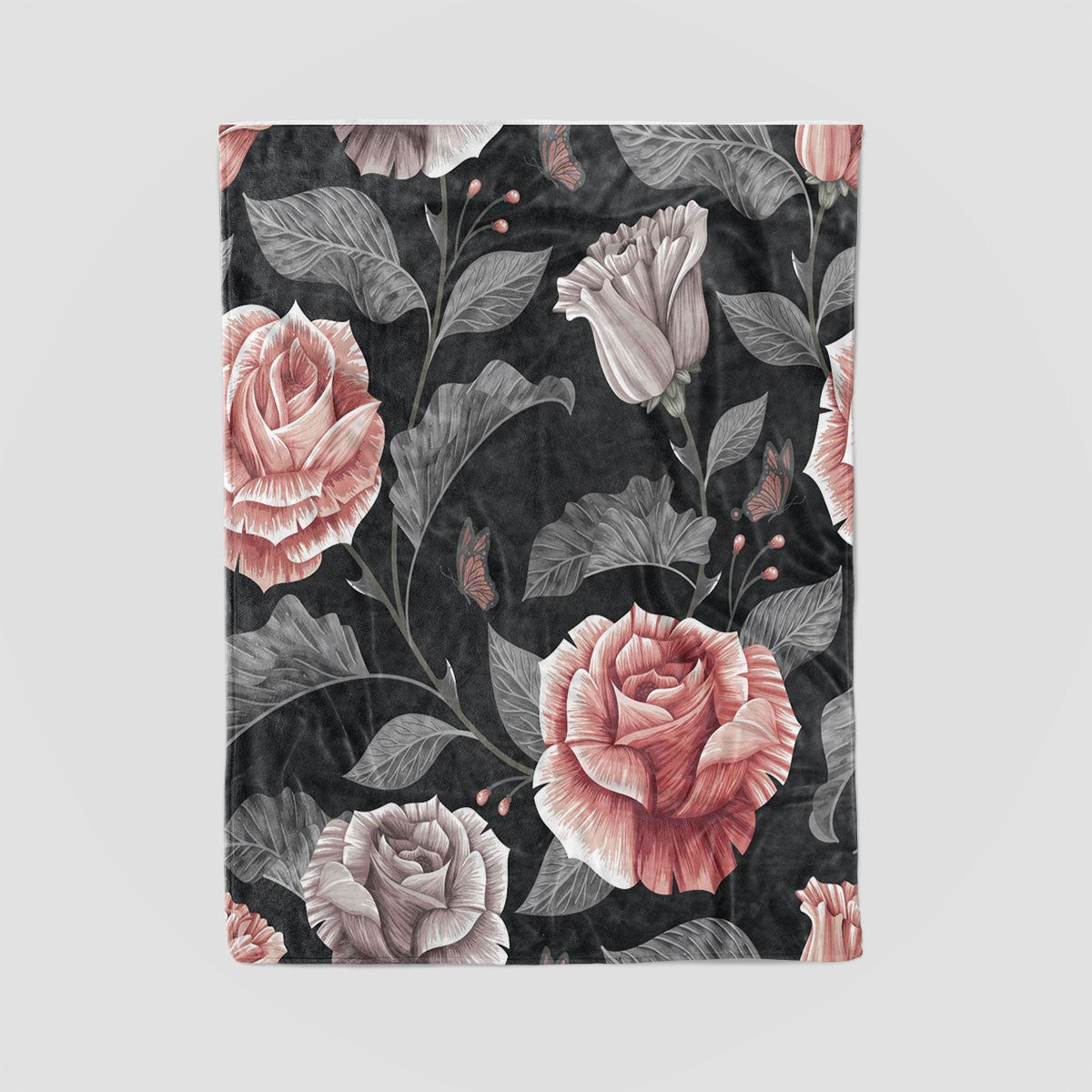 Dark Vintage Roses Floral Patterns Pink Personalized Throw Blanket Custom Fleece Sherpa Throw