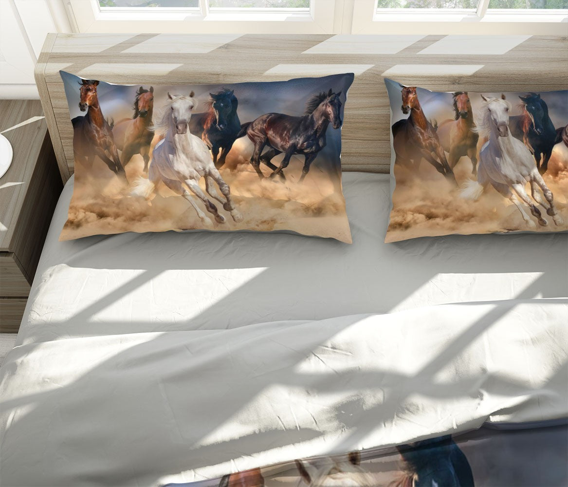 Dash Dust Gallop Duvet Cover Set W Pillow Cover, White Animals Horses 3D Quilt Cover, Single Double Queen King Size Doona Cover