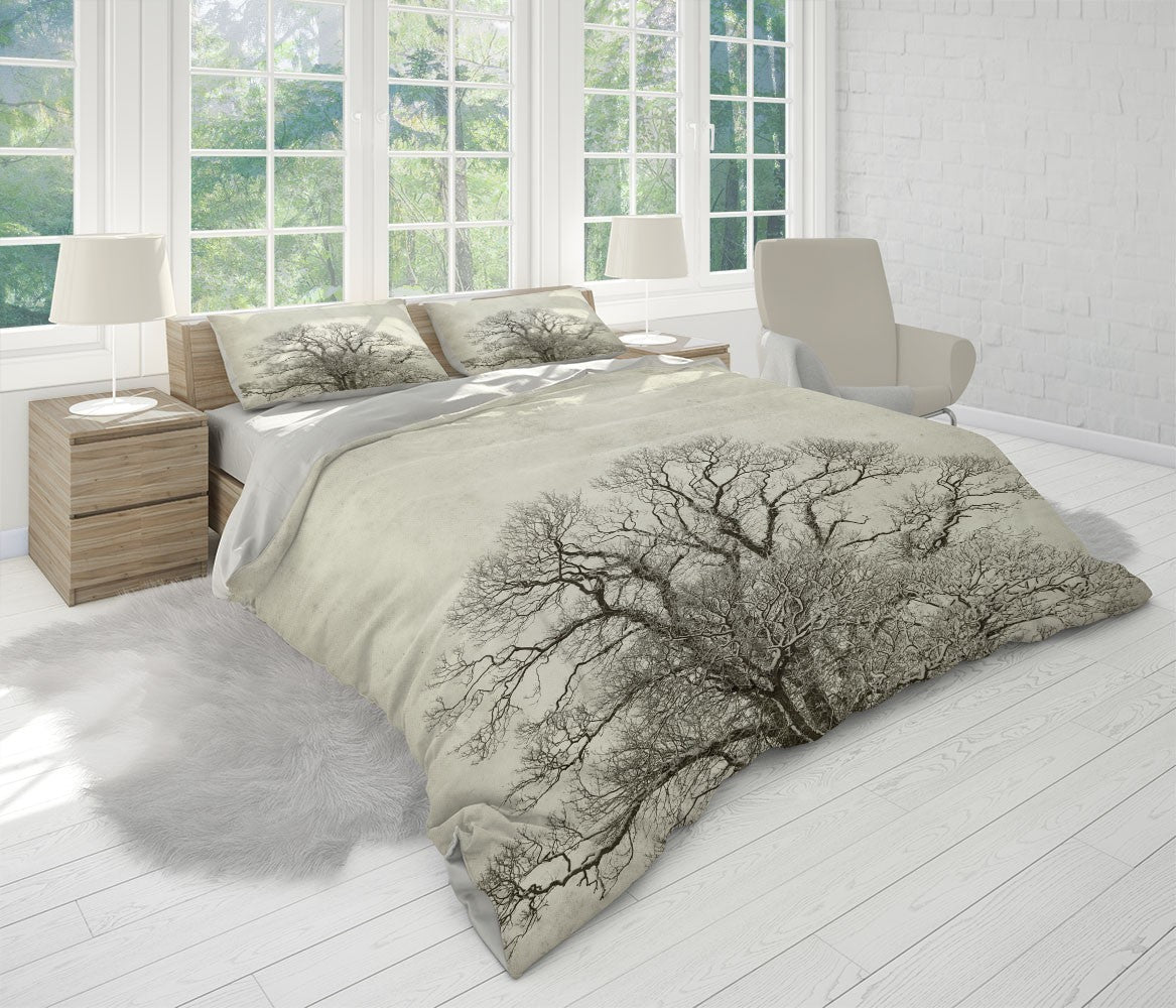 Dead Branches Duvet Cover Set W Pillow Cover, Black And White Forest Plant 3D Quilt Cover, Single Double Queen King Size Doona Cover