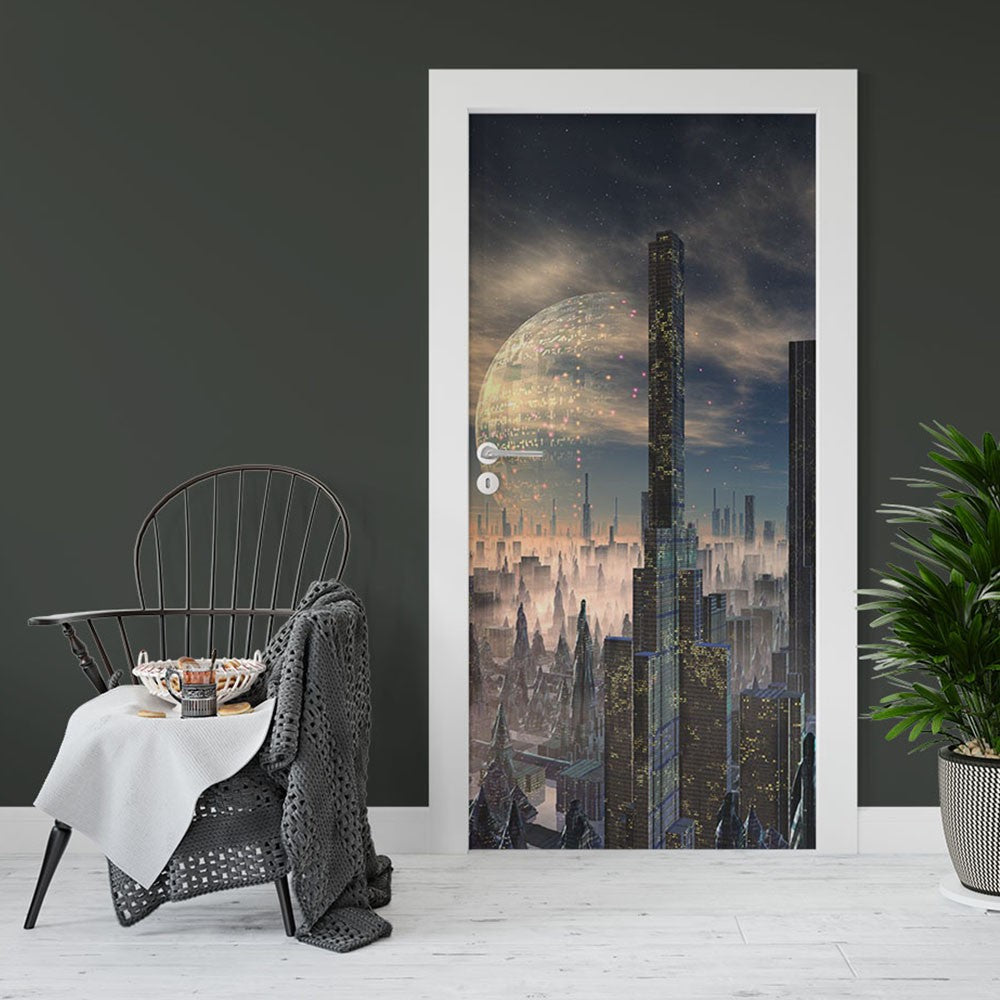 Death Star Sci-Fi Kids Fantasy Door Wrap, Customized Mural For Door, Door Mural Sticker, Peel And Stick Door Cover, Removable Door Decal
