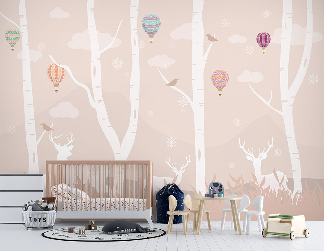 Deer Trees Kids Animal Multicolour Wallpaper Mural,Self-Adhesive Peel And Stick 3D Wall Paper,Removable Australian Company Wall Decor