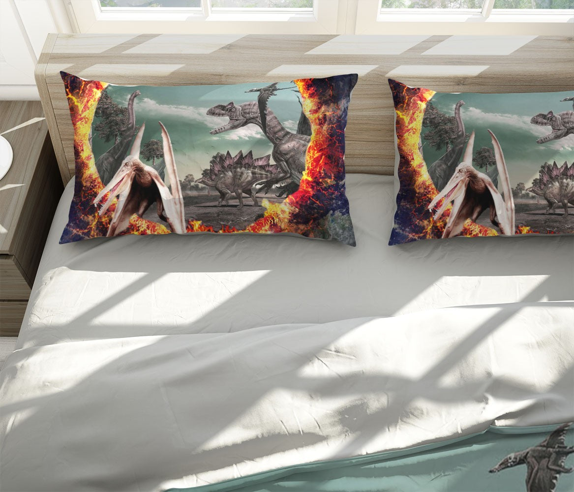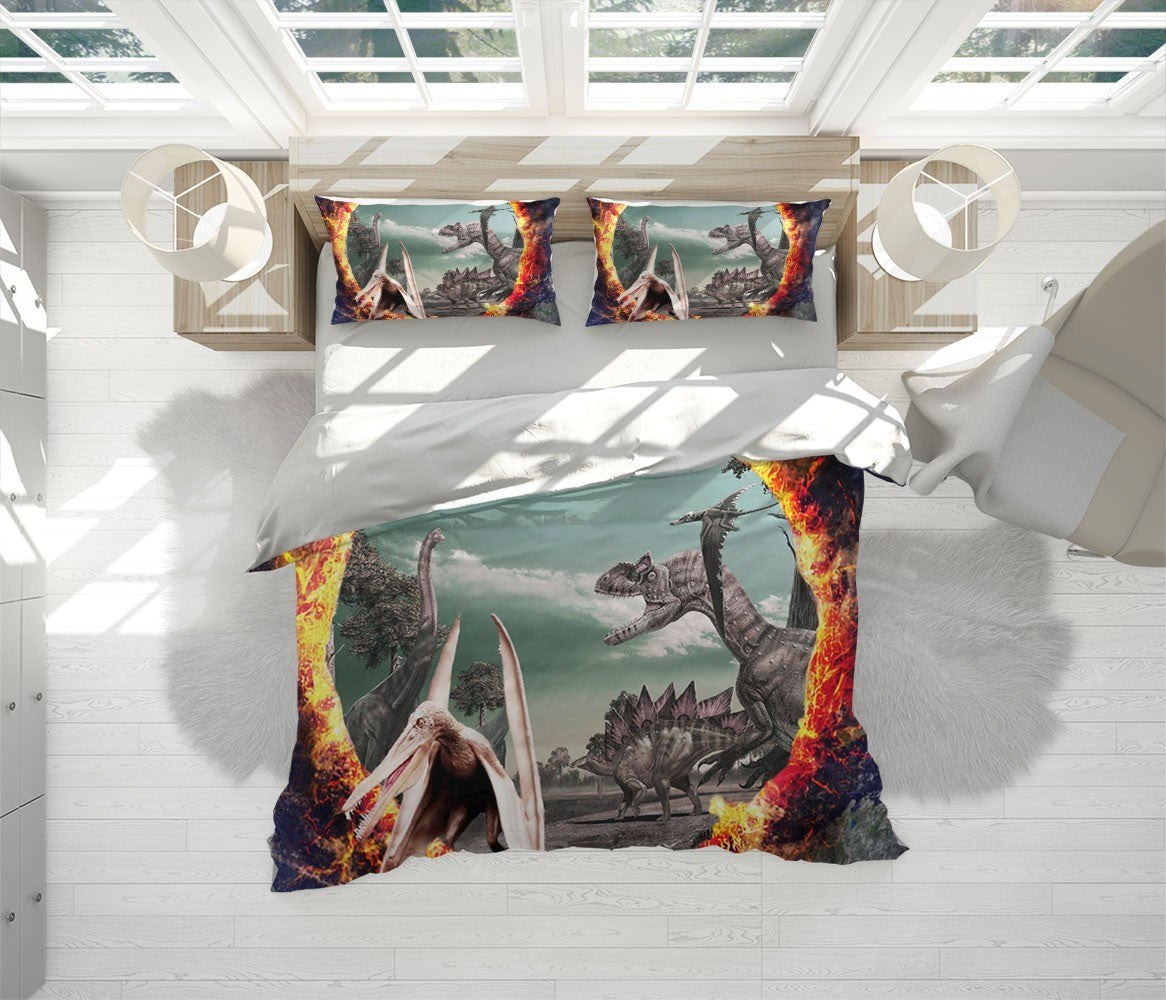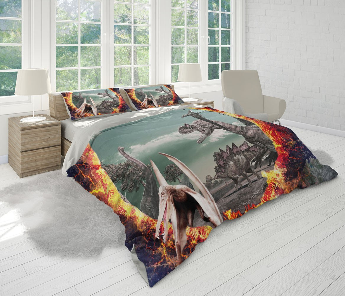 Dinosaurs Earth Duvet Cover Set W Pillow Cover, Red Animals Wild Animals 3D Quilt Cover, Single Double Queen King Size Doona Cover